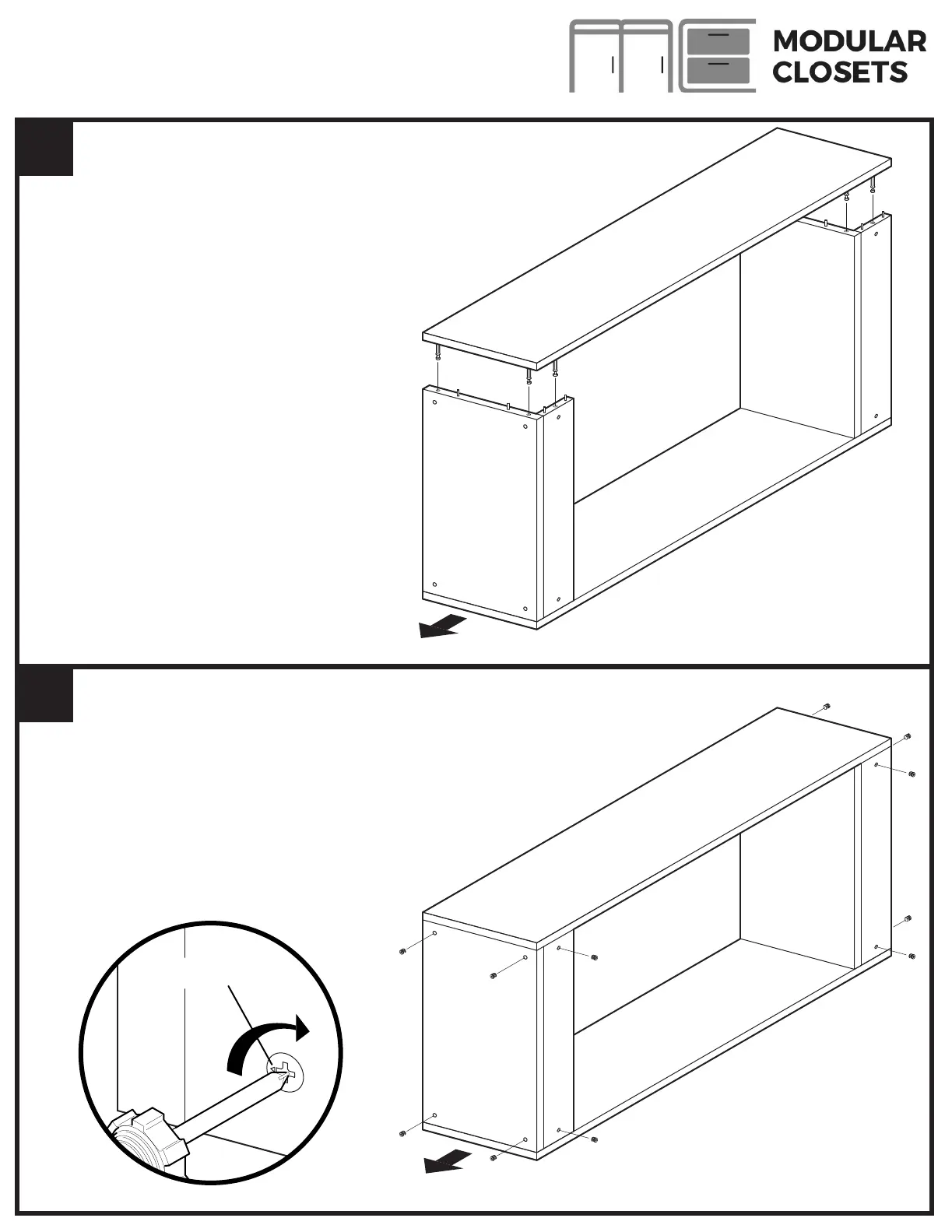Insert Camlocks (H) in holes in Set Shelves (D)