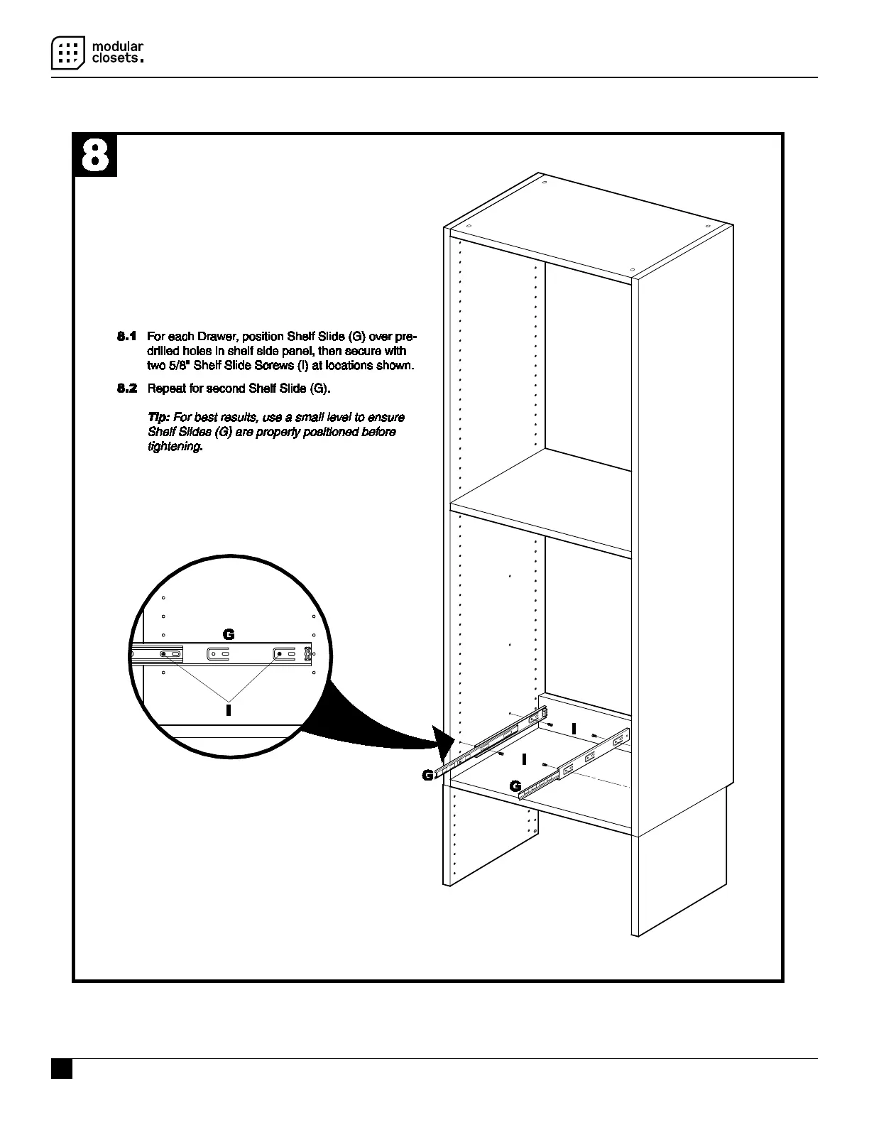 Modular Closets Short Tower - Cabinet Installation for Drawer Kits; Attach Shelf Slides to Cabinet