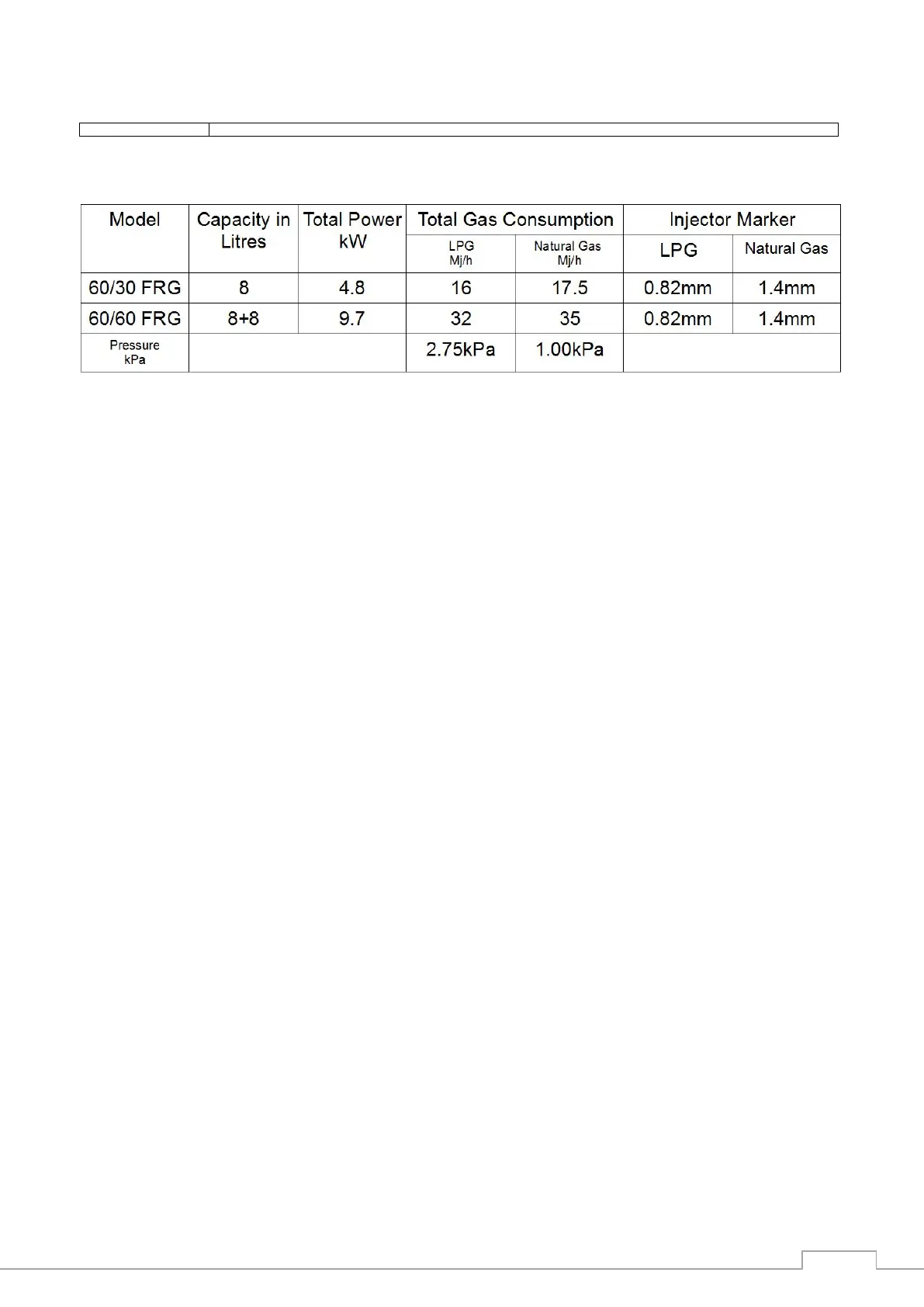 When installing the appliances, the gas supply pressures must be those given above in order to have maximum burner efficiency.