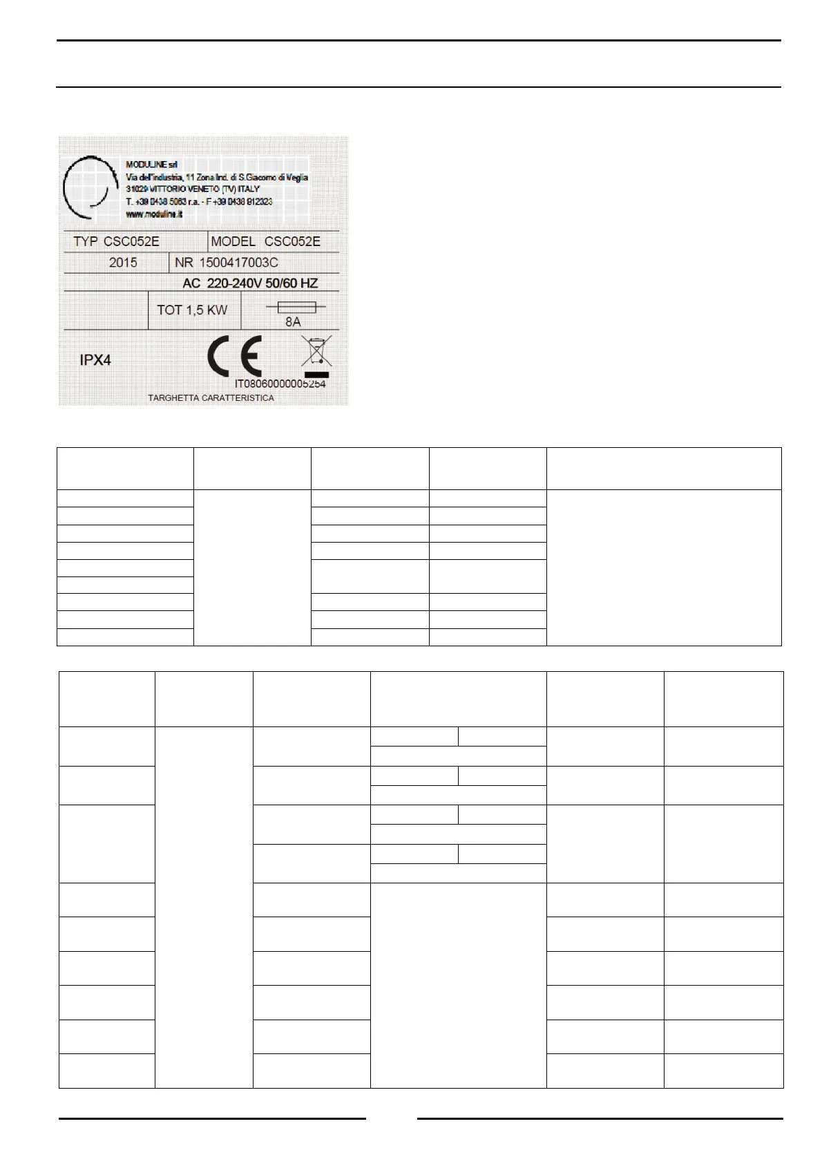 Moduline CSC 031E - Avvertenze E Dati Tecnici