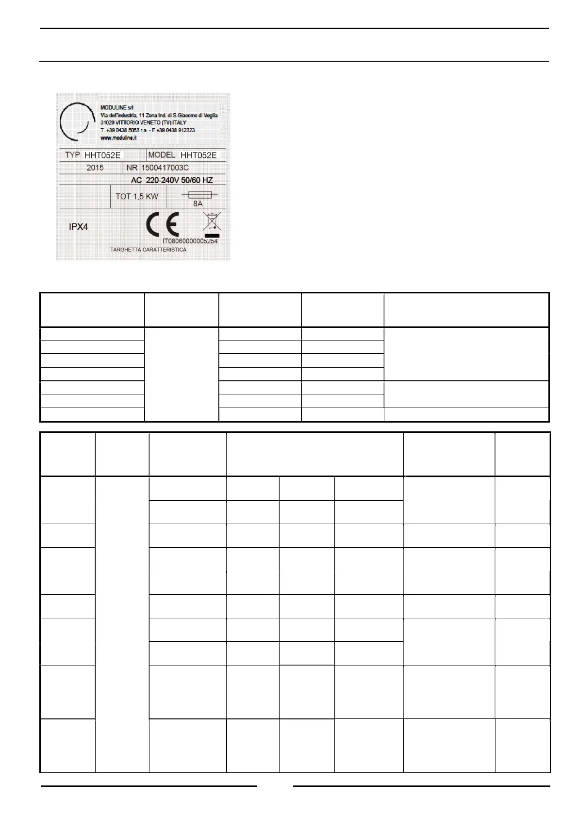AVVERTENZE E DATI TECNICI