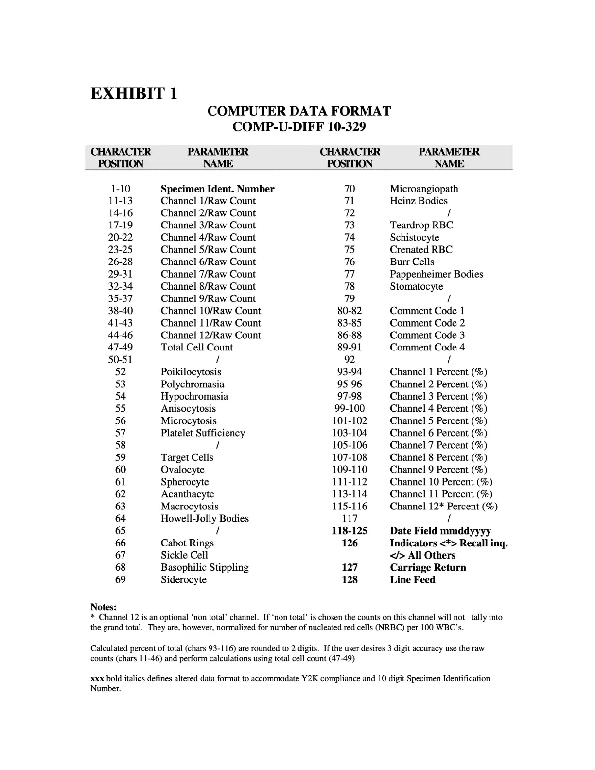 Modulus COMP-U-DIFF 10-329 - Exhibit 1: Computer Data Format; Data Format Parameter Definitions