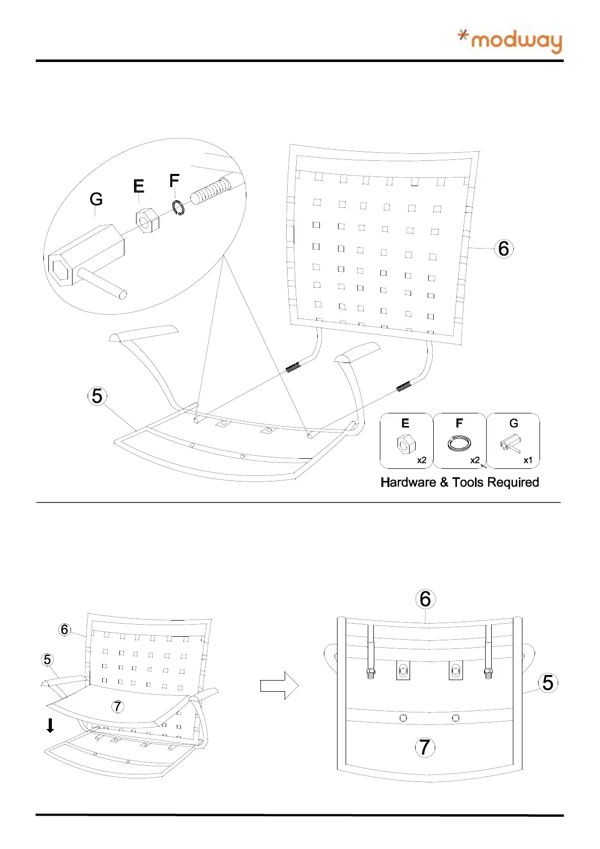 to the Seater frame (5) by using 2 pieces of Nuts (E) and 2 pieces of