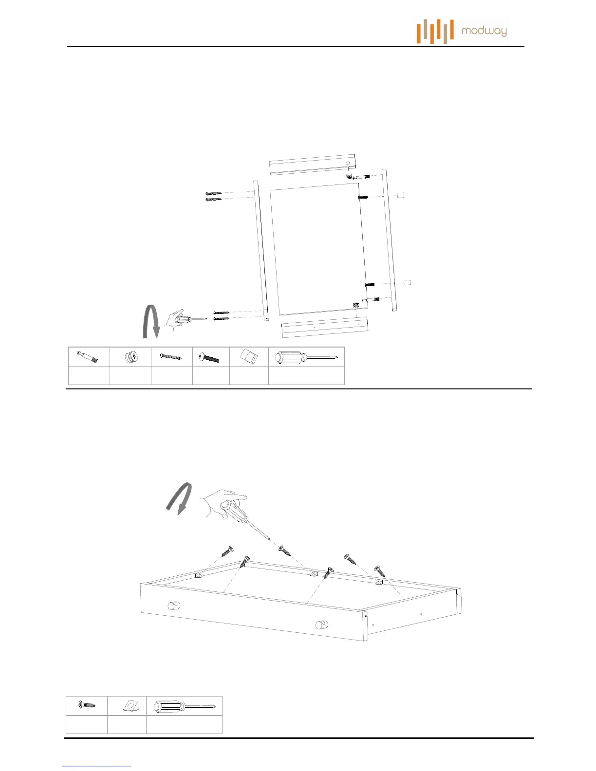 Attach the 6pcs Drawer Bottom Holder (n) to the bottom of the assembled Center Drawer by using 6 pcs Screw (g) as shown.
