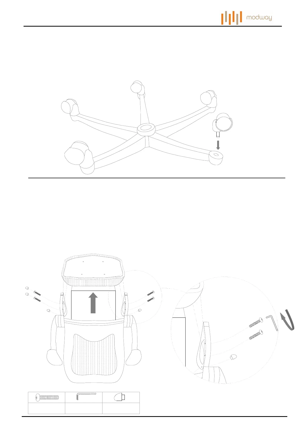 Insert 1pc of Castor (F) into the Chair Base (E) as shown by hand.