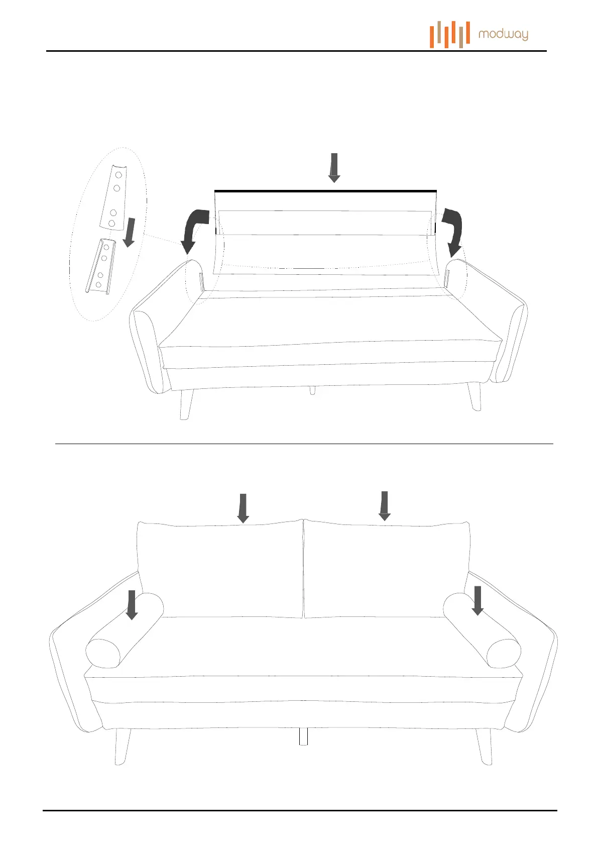 Carefully cover the fabric on the back of Sofa Back (6) by using pre-installed Velcro