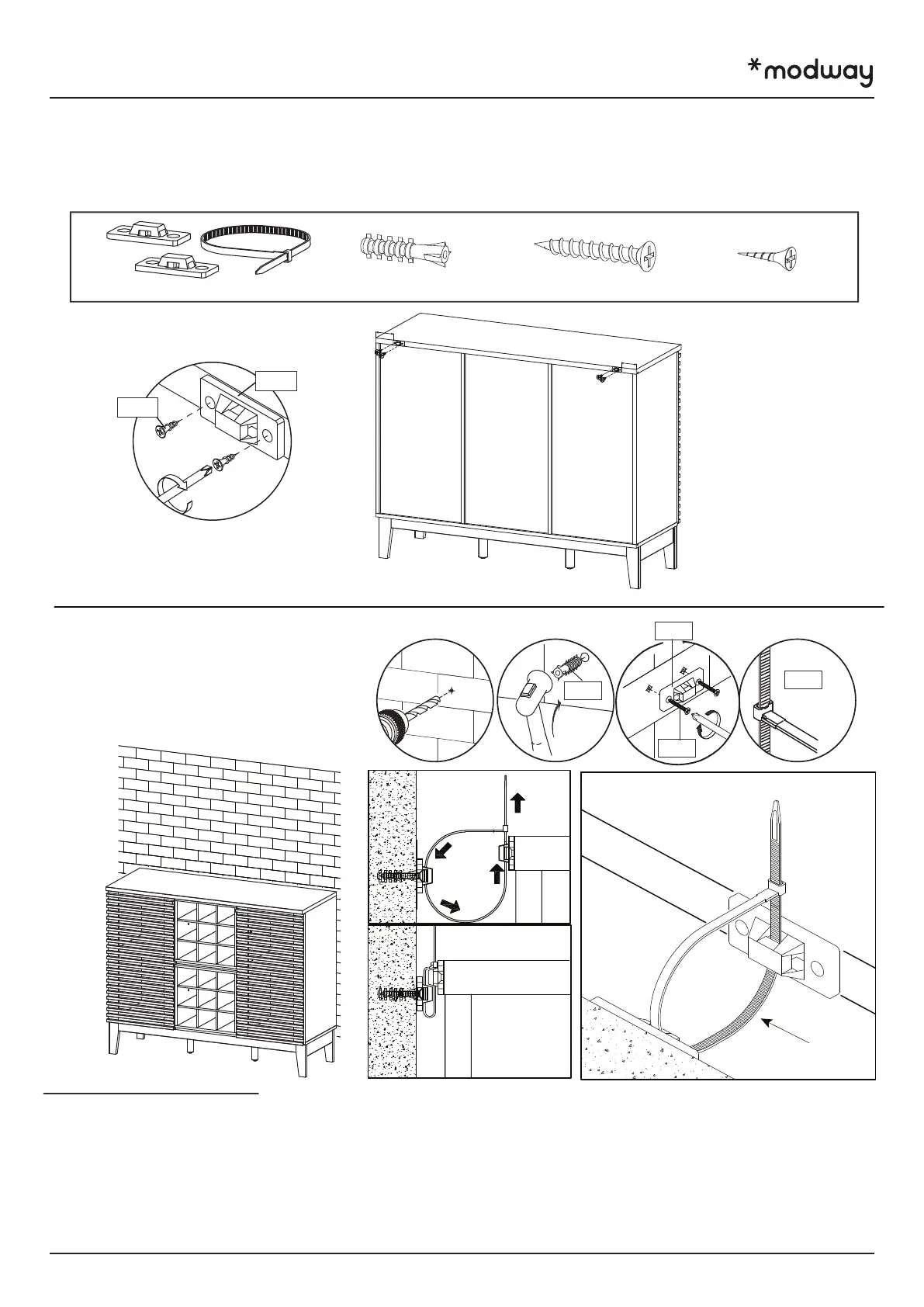 1. Attach bracket (AA1) securely to the back top of the furniture using screw (AA4) provided. Allow 8 - 10 cm from each side.