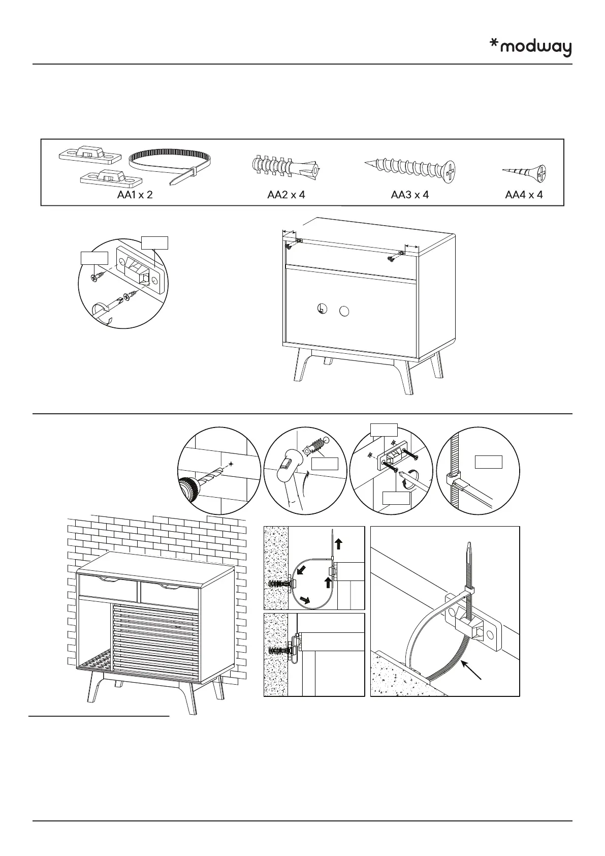 1. Attach bracket (AA1) securely to the back top of the furniture using screw (AA4) provided. Allow 8 - 10 cm from each side.