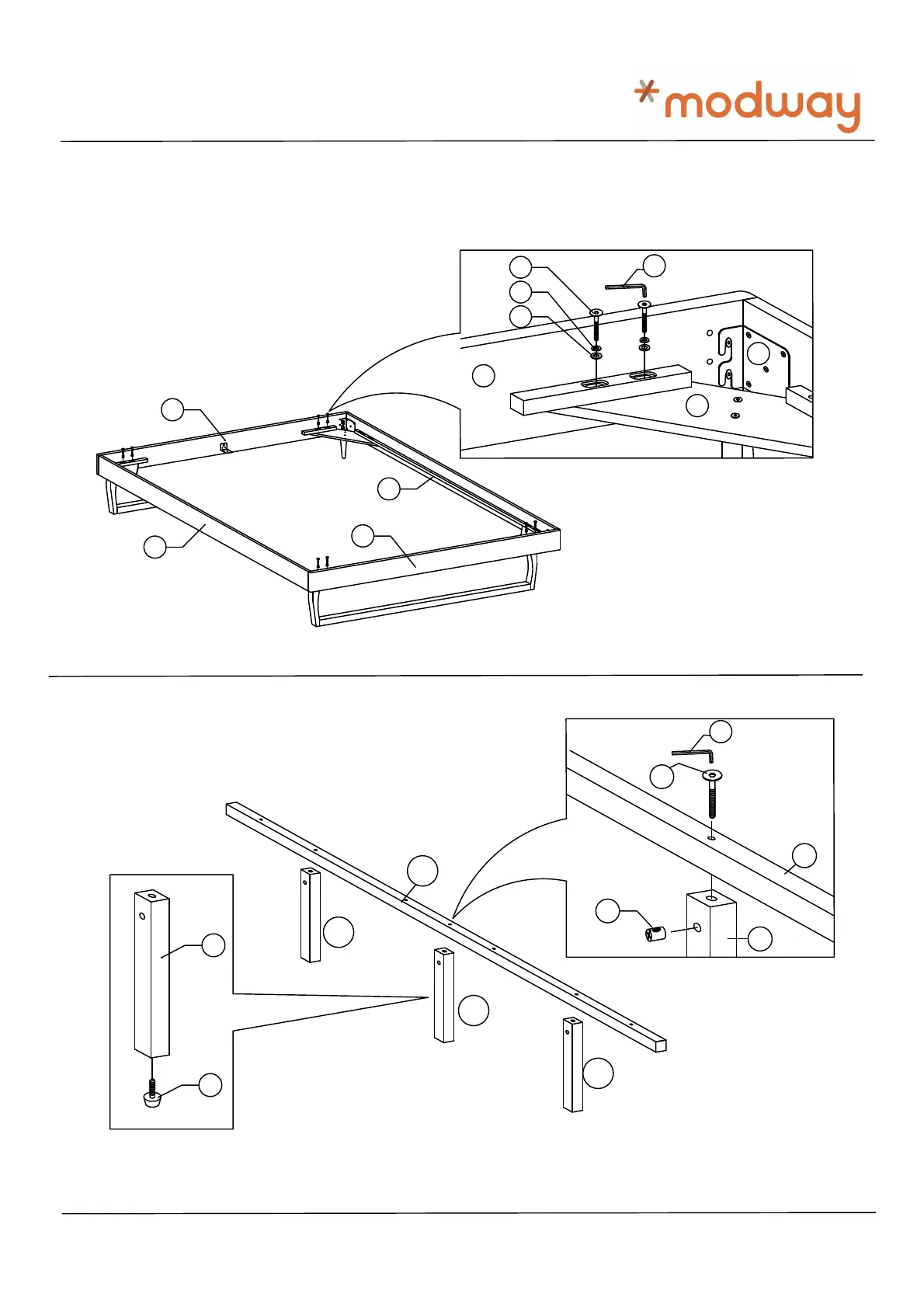 modway MOD-6214 - Step 6: Attach Support Rails; Step 7: Attach Center Rail Legs