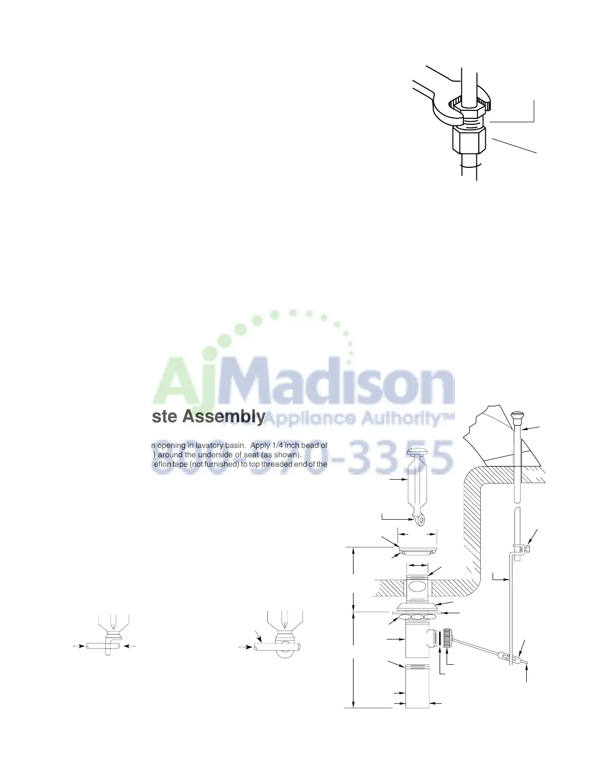 1. Thoroughly clean around drain opening in lavatory basin. Apply 1/4 inch bead of