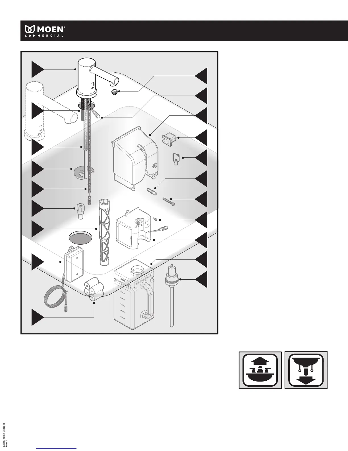 · Soap dispenser may not operate with sinks that protrude above the deck mounting surface. Consult the Exploded Parts View