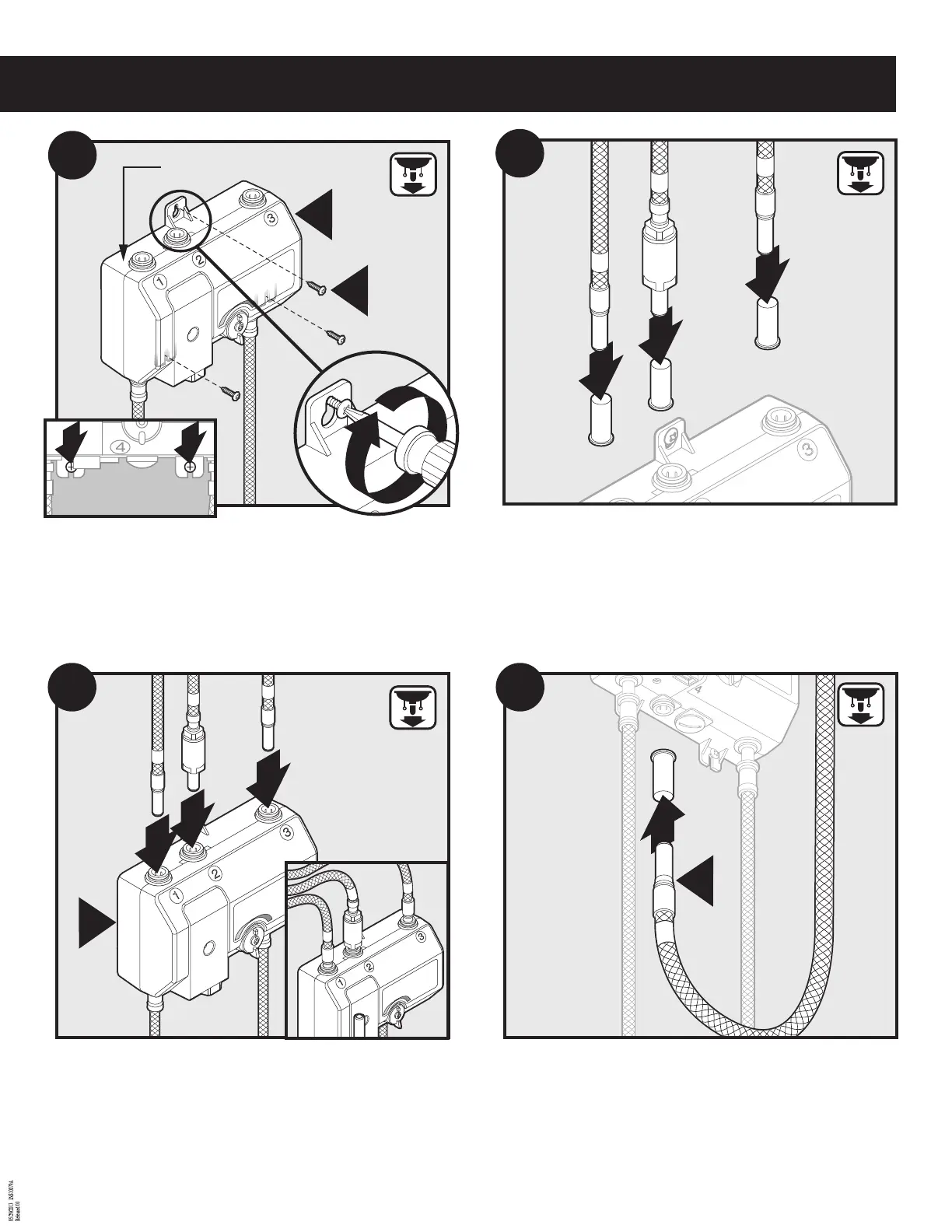 Insert faucet hoses (1, 2, 3) to corresponding push t connections on top of