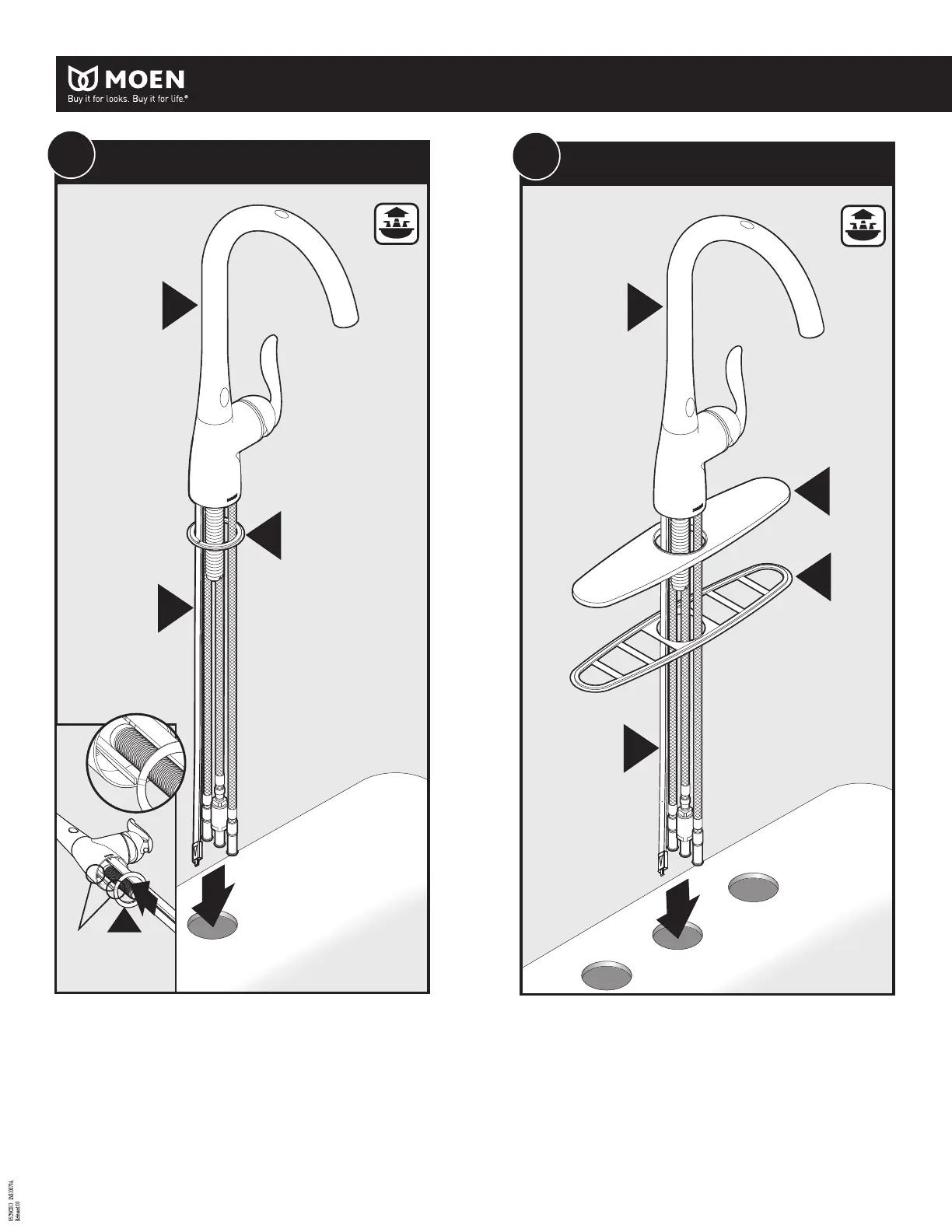 gasket (C)–in hole on sink. Note: Installs with handle on right side only.