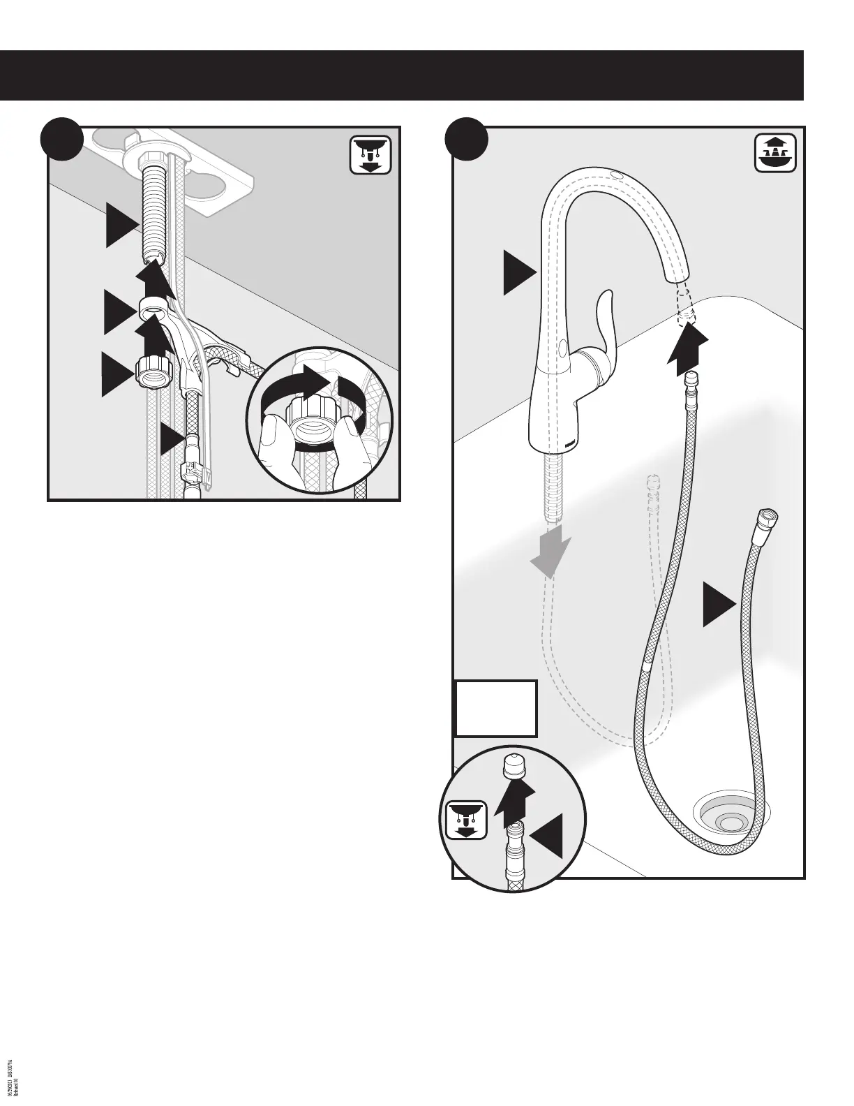 Insert small end of pulldown hose (D) into spout and feed