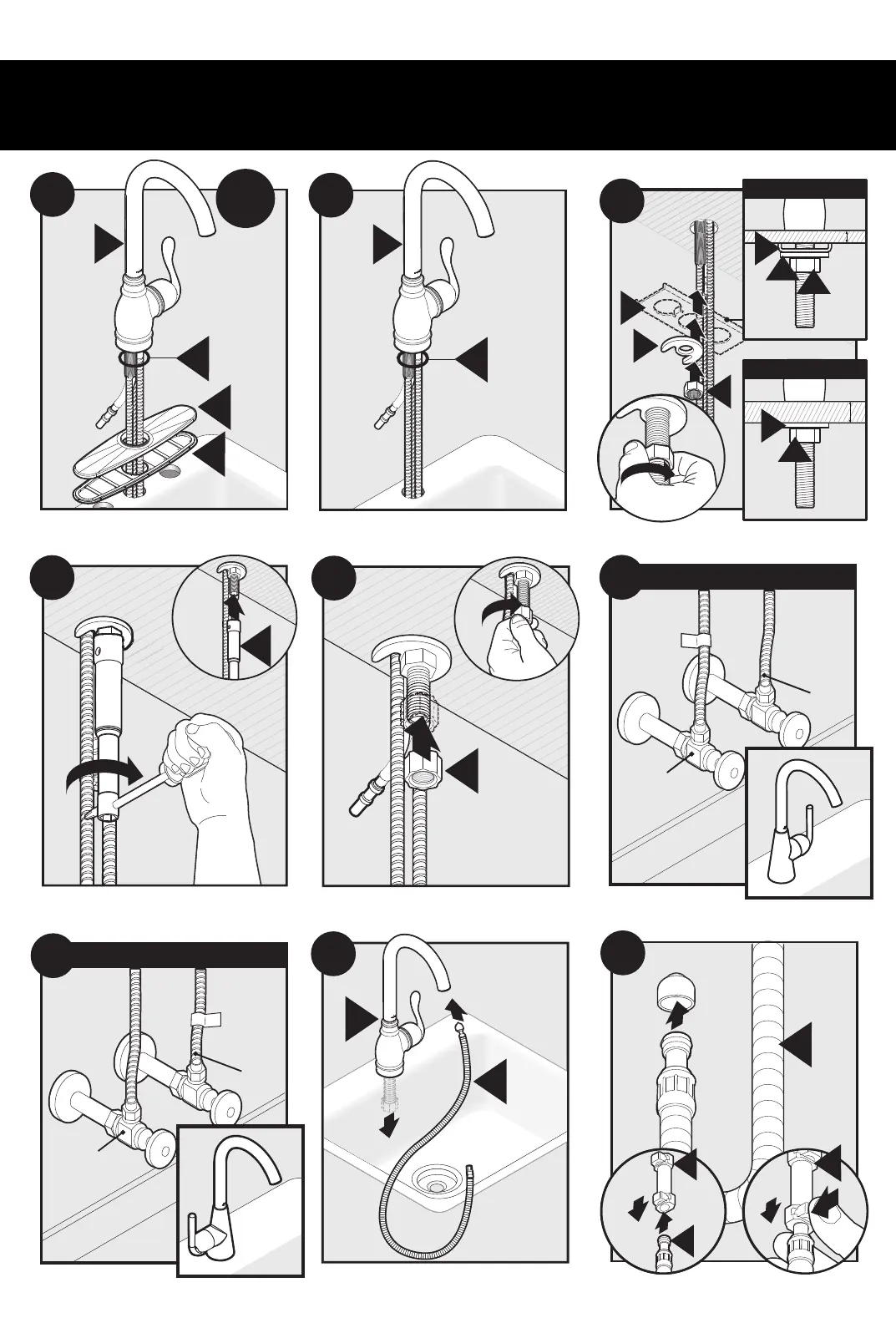 Moen CA87003 Series - Faucet Installation Guide; Mounting the Faucet; Connecting Water Supply Lines; Connecting Hoses and Securing Components