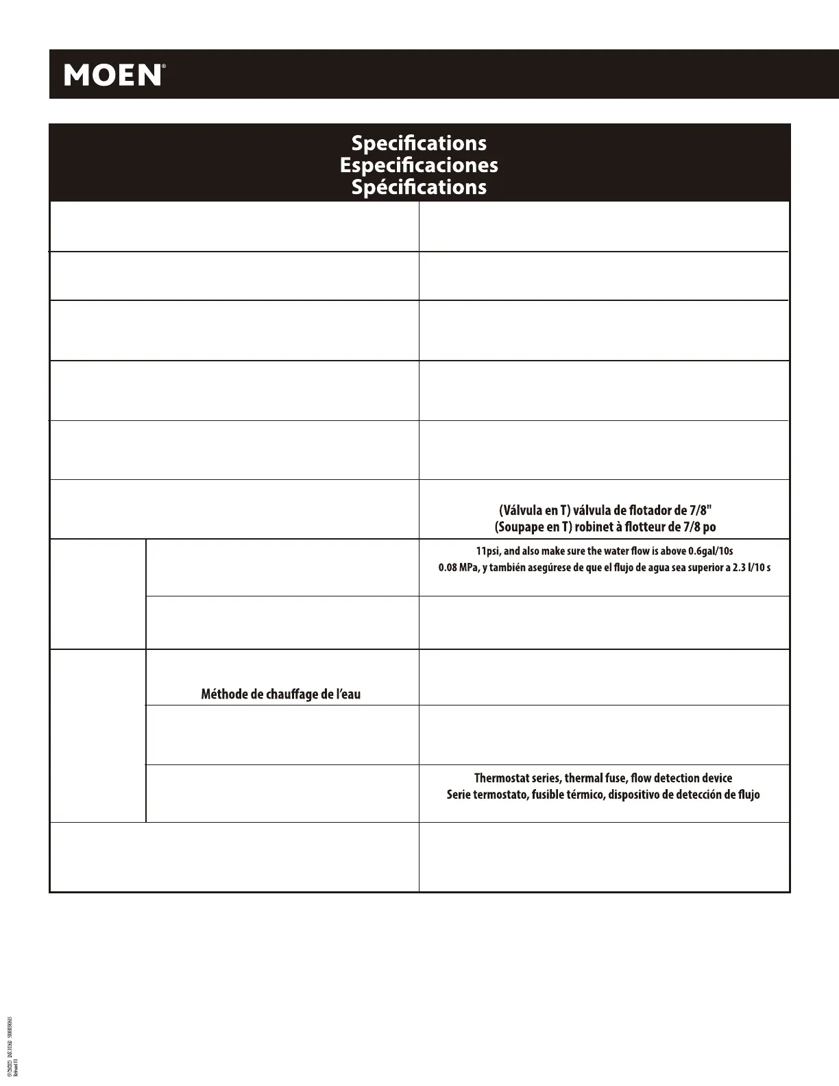 0,08 MPa, et aussi s’assurer que le débit d’eau est supérieur à 2,3 L/10 s