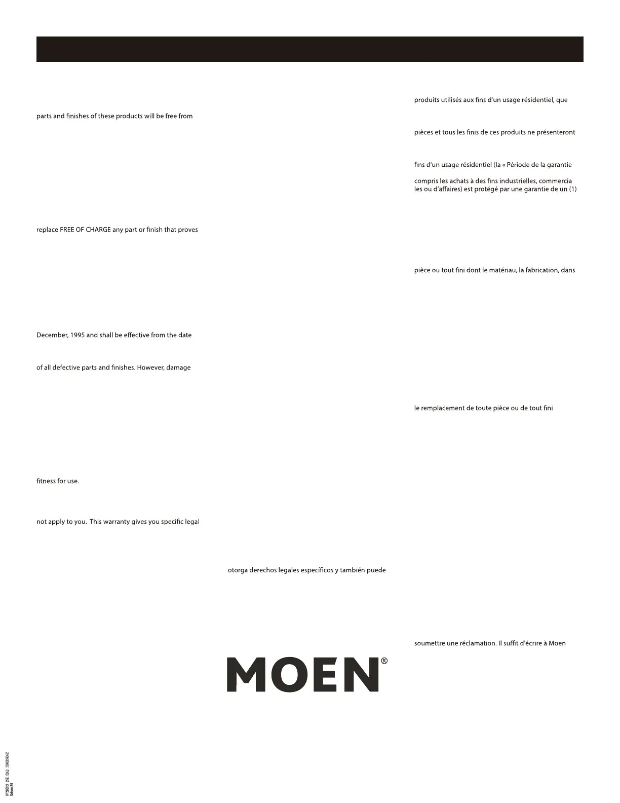 in making warranty claims. Simply write to Moen at the