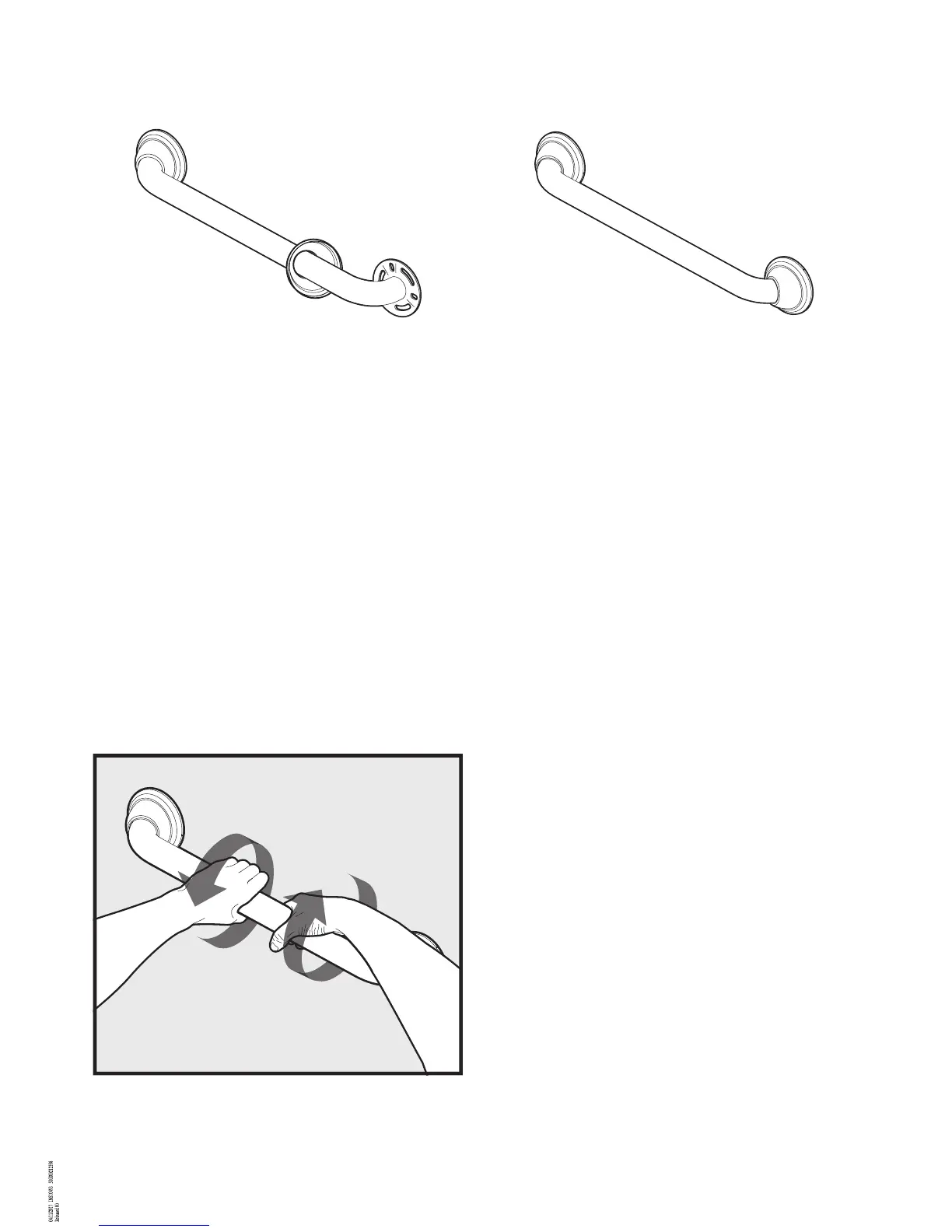 7. To mount the grab bar, reposition one end of the grab bar SecureMount™ mounting ange over the marked holes.