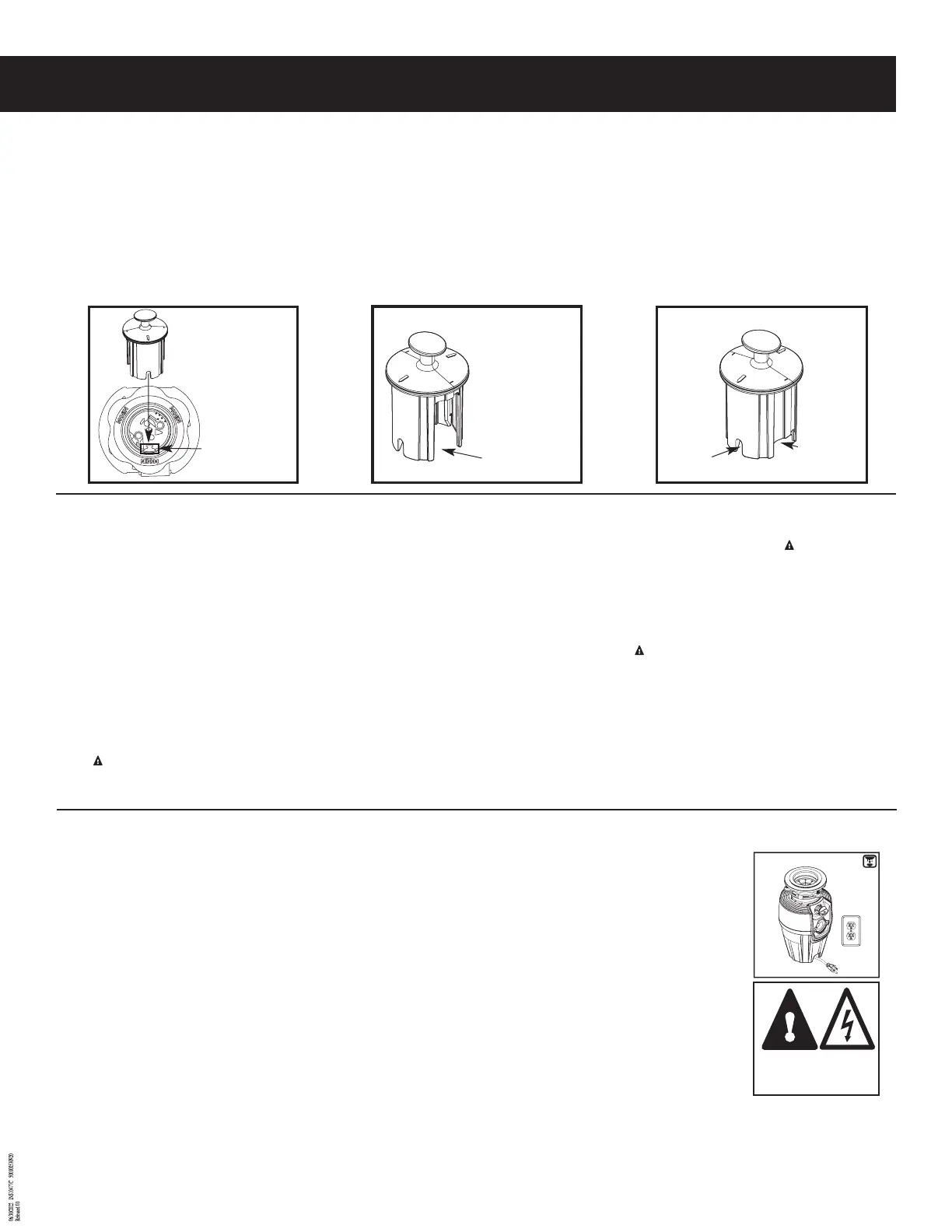 least resistance for electric current to reduce the risk of electric shock. THIS DISPOSAL IS EQUIPPED WITH A CORD HAVING AN EQUIPMENT-GROUNDING CONDUCTOR AND A GROUNDING