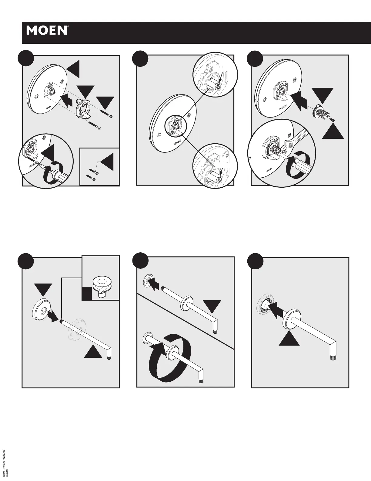 1. Thread Shower Arm (E) into wall opening.