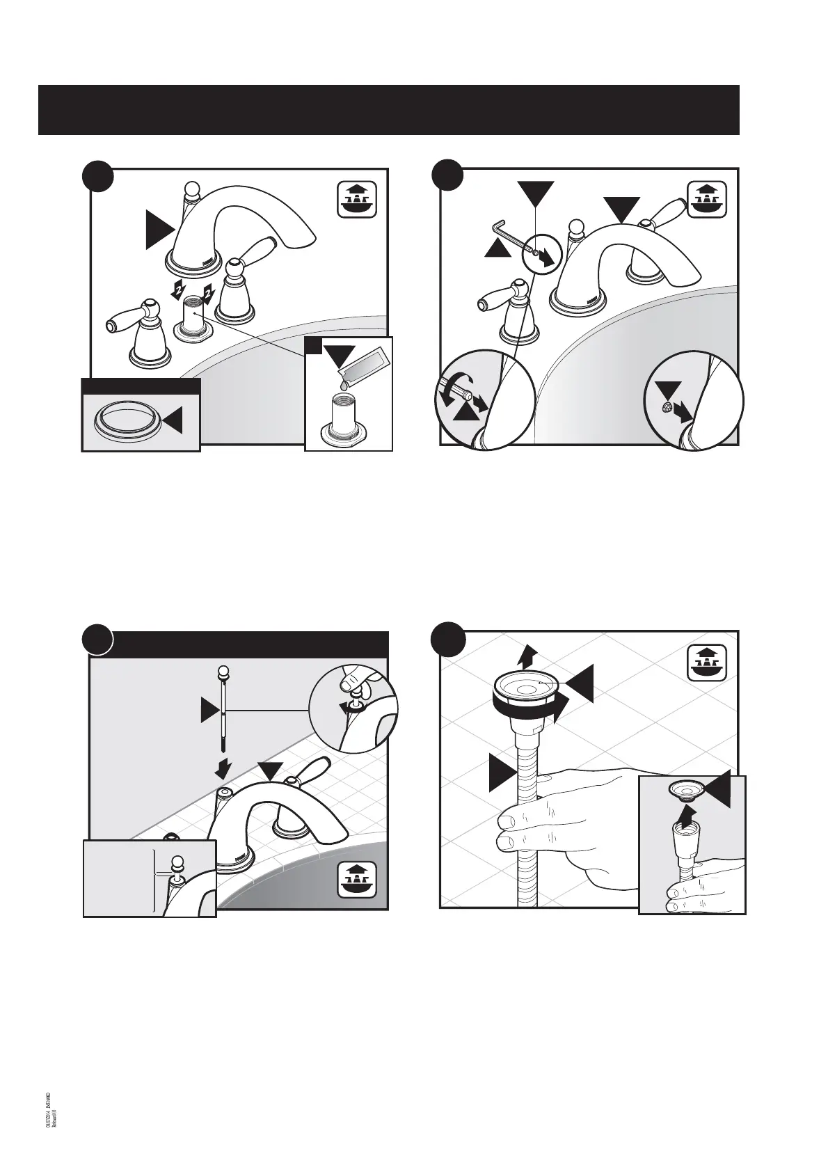 1. Using a Hex Wrench (S), install Set Screw (B) into Spout (F).