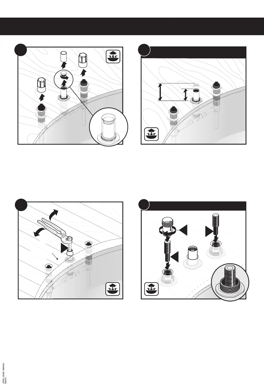 Ajuste la altura del tubo roscado al armar el surtidor. Para cubierta delgada, vaya
