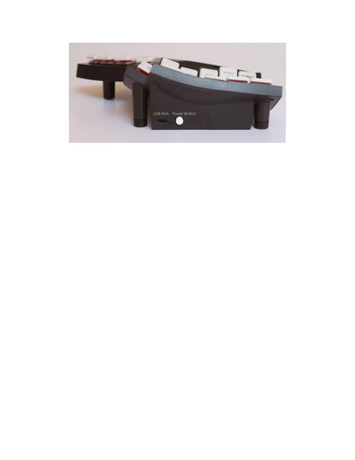 USB port: For connecting to the host (left half only), updating firmware, and battery charging.