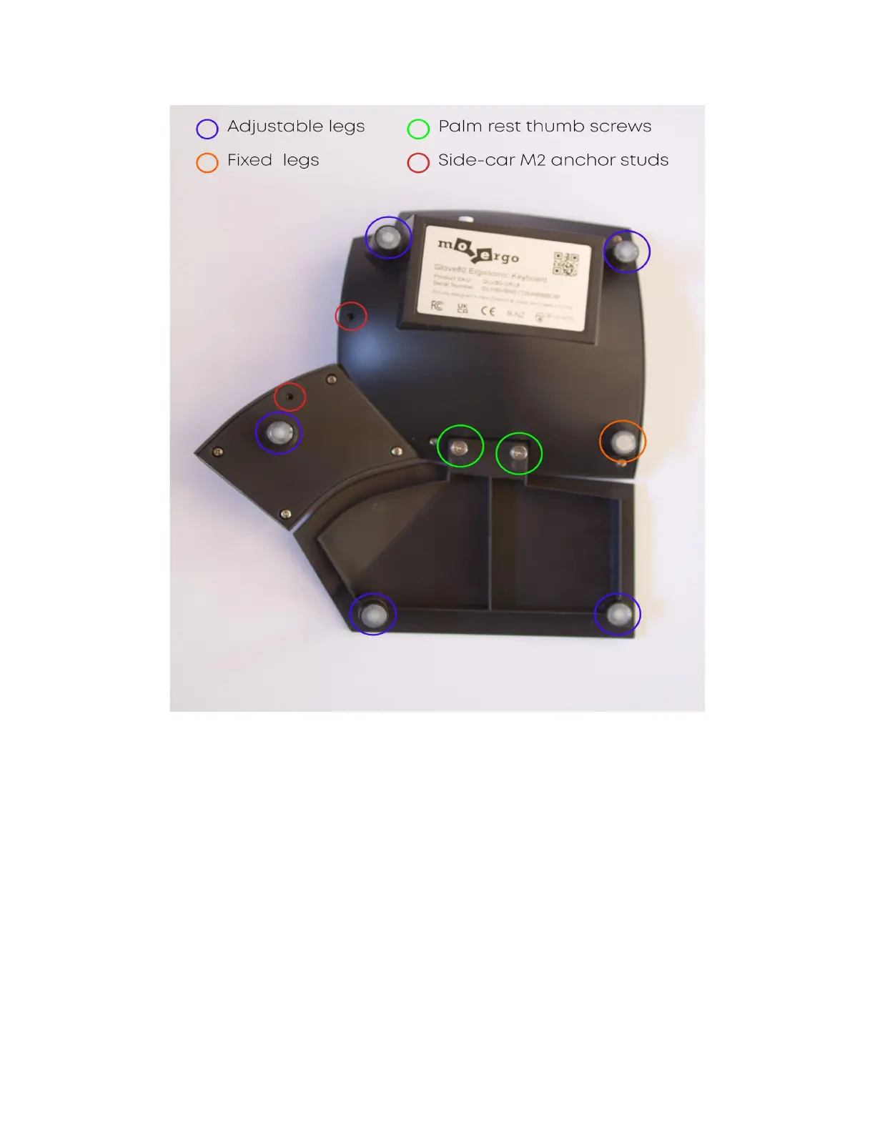 Palm rest thumb screws: For attaching the palm rest to the keyboard