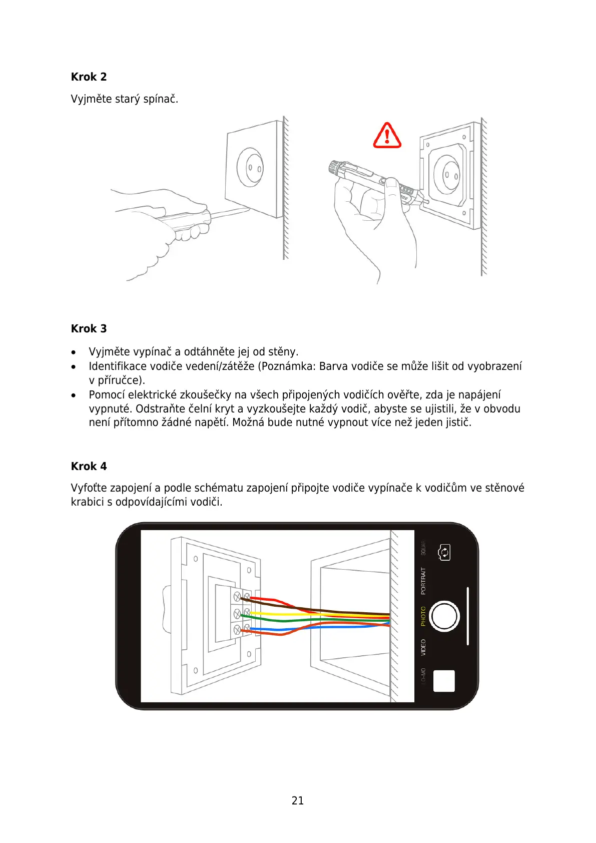 Vyfoťte zapojení a podle schématu zapojení připojte vodiče vypínače k vodičům ve stěnové