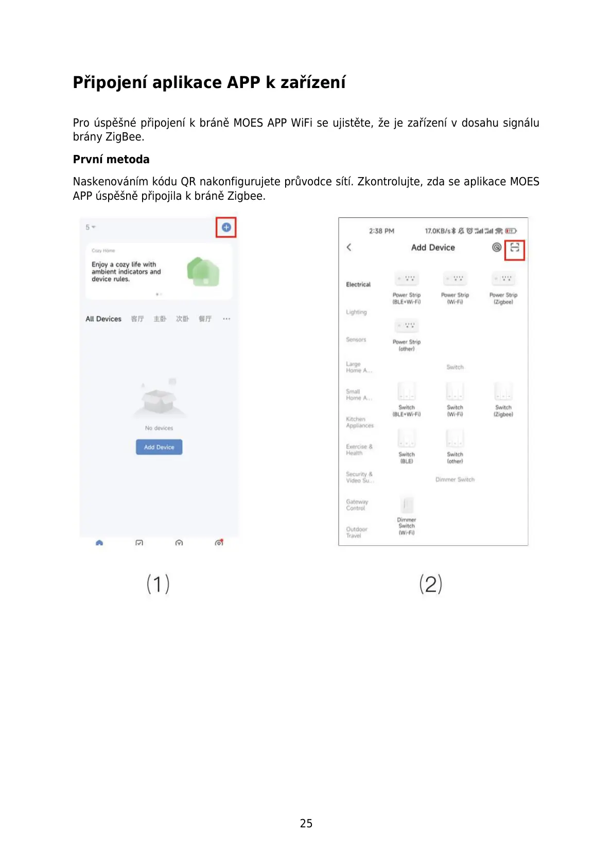 Pro úspěšné připojení k bráně MOES APP WiFi se ujistěte, že je zařízení v dosahu signálu