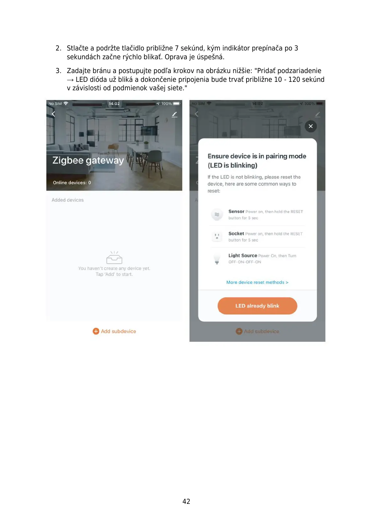 → LED dióda už bliká a dokončenie pripojenia bude trvať približne 10 - 120 sekúnd