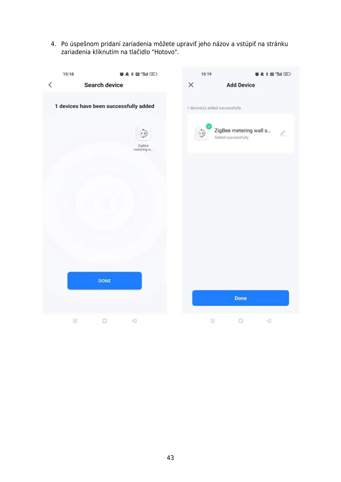 zariadenia kliknutím na tlačidlo "Hotovo".
