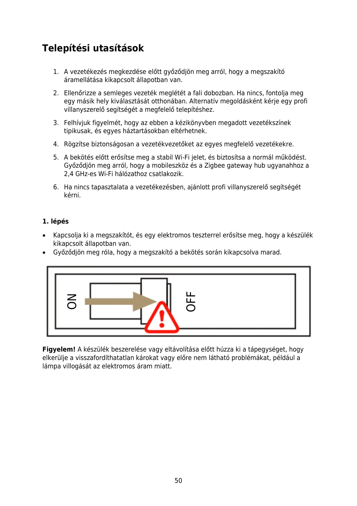 6. Ha nincs tapasztalata a vezetékezésben, ajánlott profi villanyszerelő segítségét