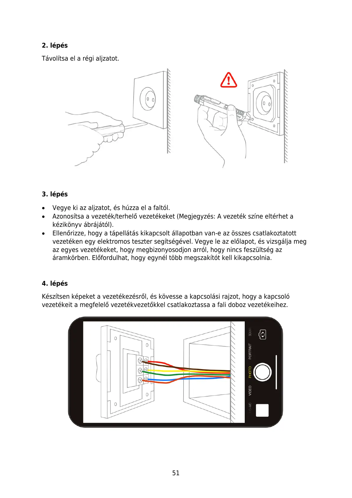 vezetékeit a megfelelő vezetékvezetőkkel csatlakoztassa a fali doboz vezetékeihez.