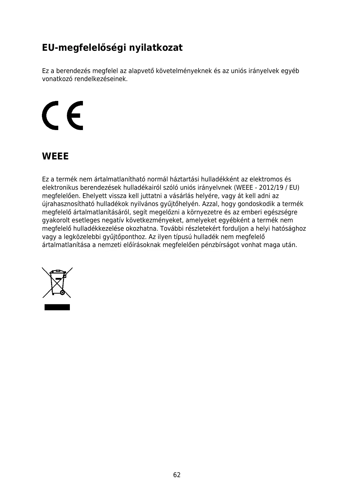 Ez a termék nem ártalmatlanítható normál háztartási hulladékként az elektromos és