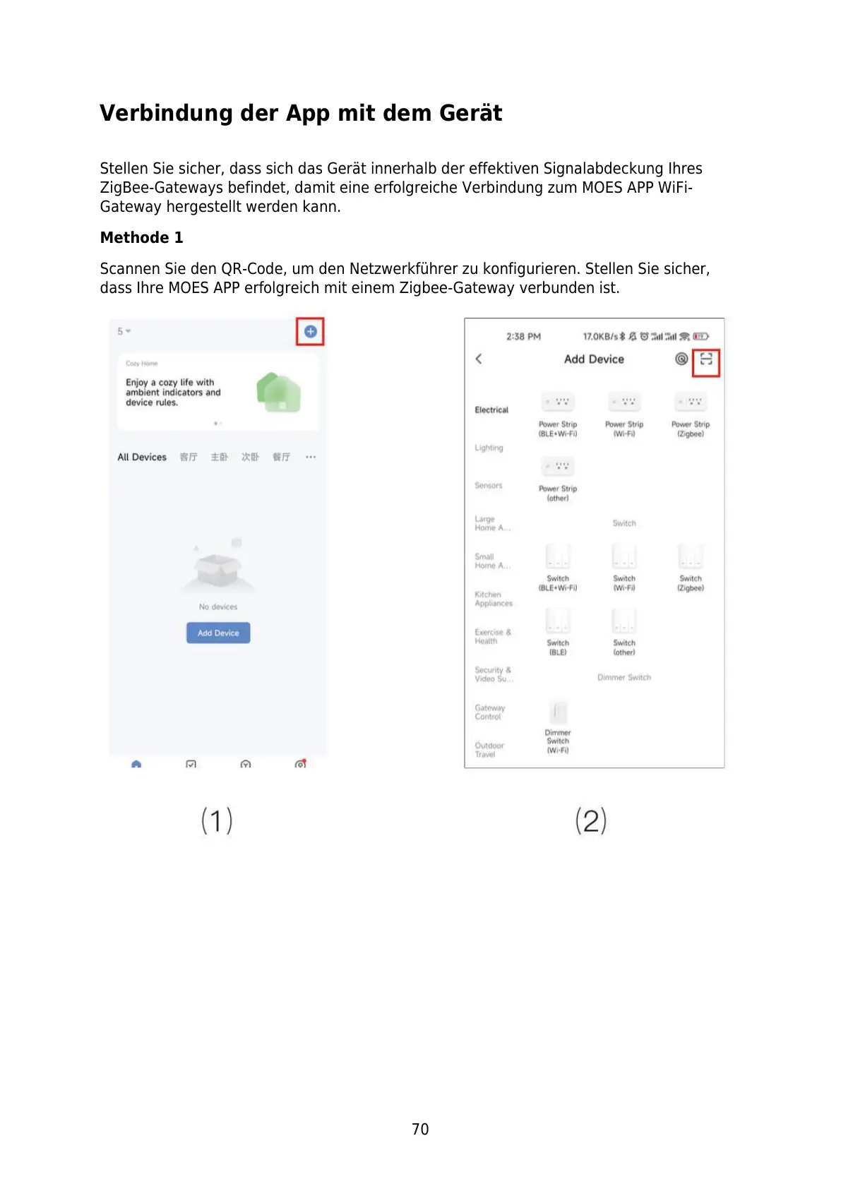 ZigBee-Gateways befindet, damit eine erfolgreiche Verbindung zum MOES APP WiFi-