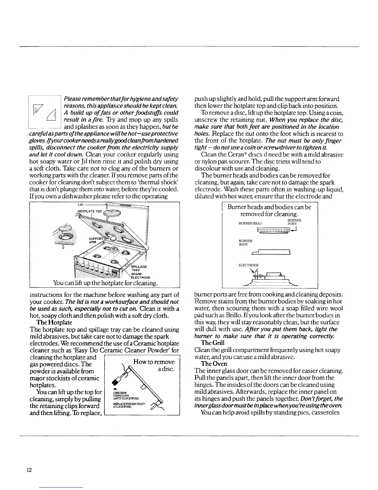 Moffat DISCOVERY - CLEANING THE COOKER; General Cleaning Advice; Cleaning the Hotplate and Burners; Cleaning the Grill and Oven