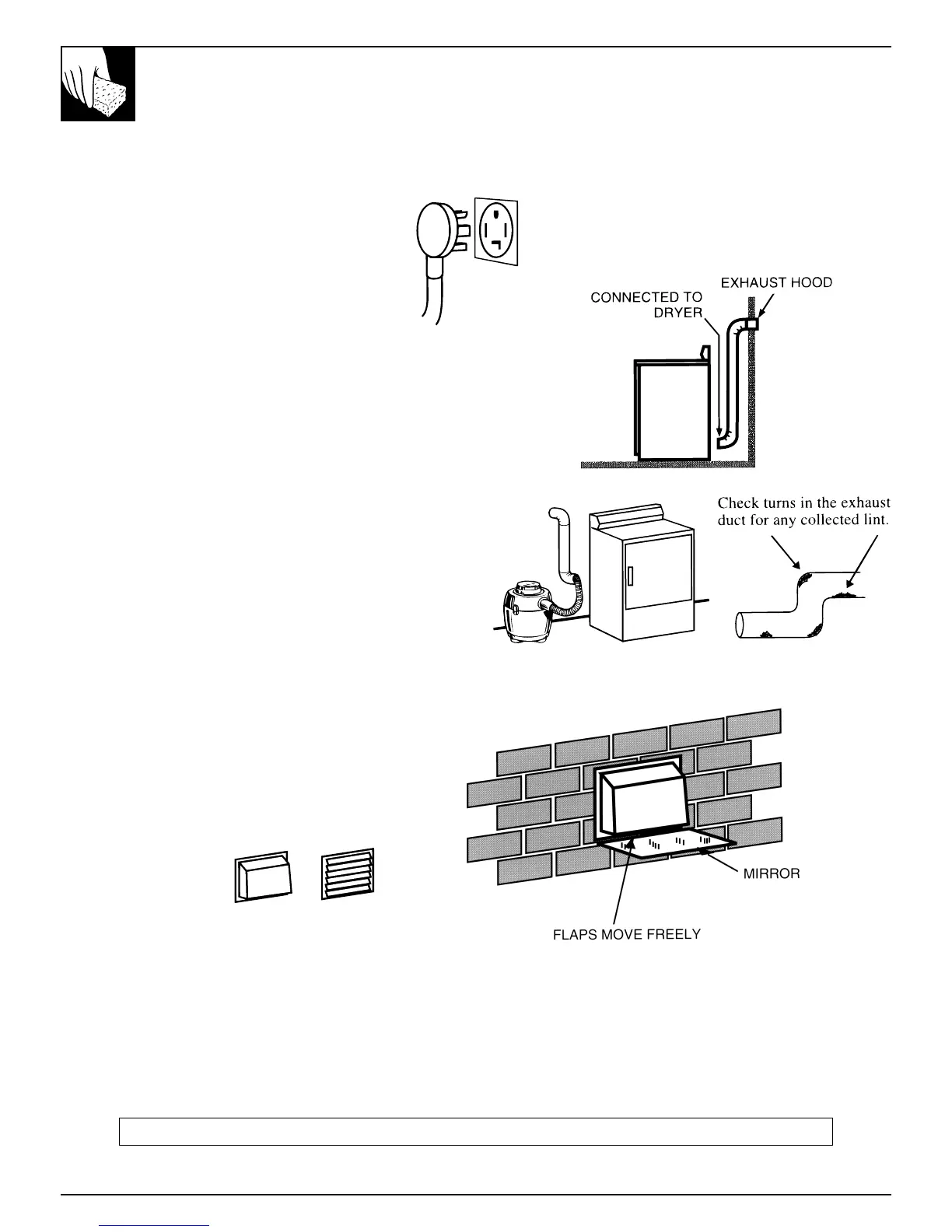 • flap should be fully open when dryer is on;