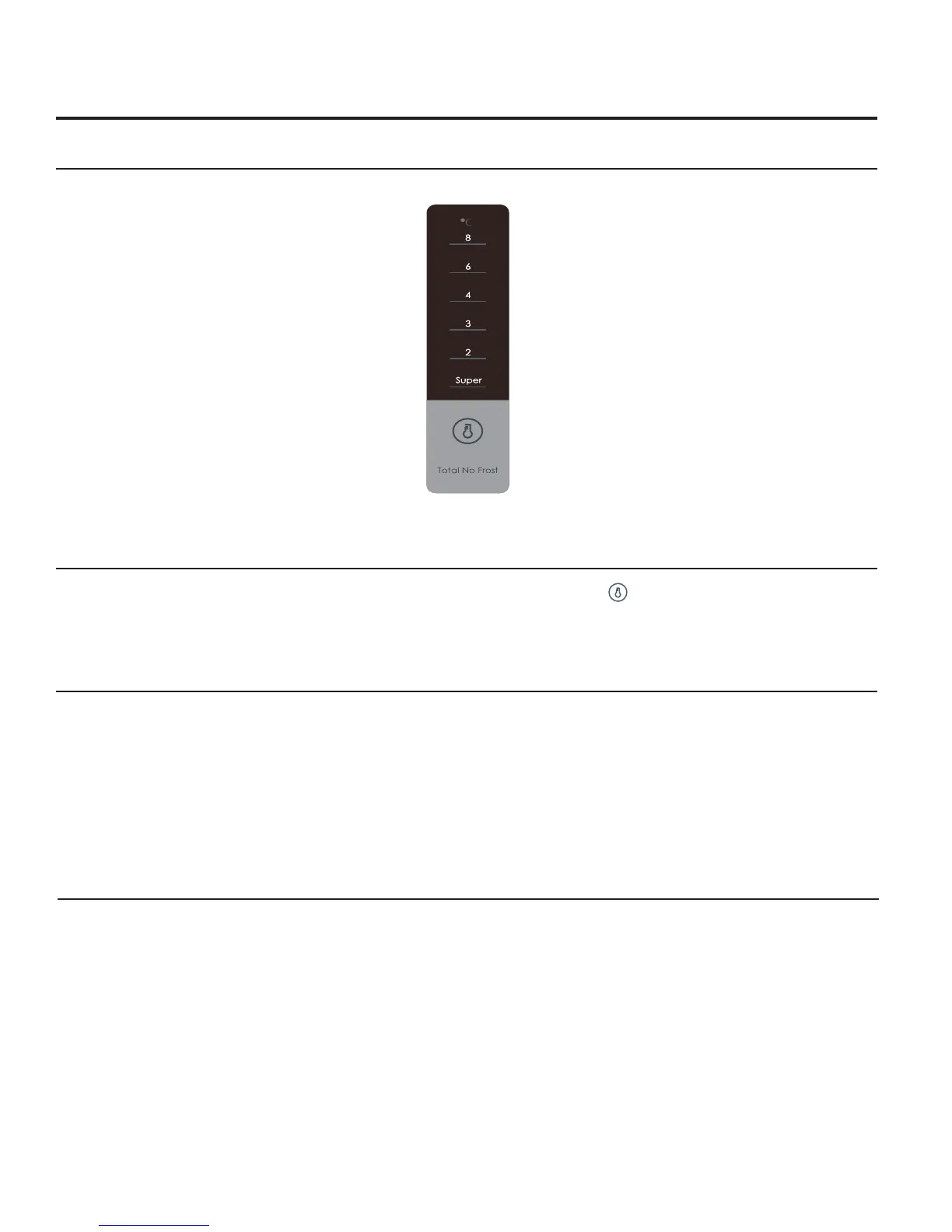 To adjust the temperature settings in the refrigeration compartment, press the icon to adjust the temperature setting or