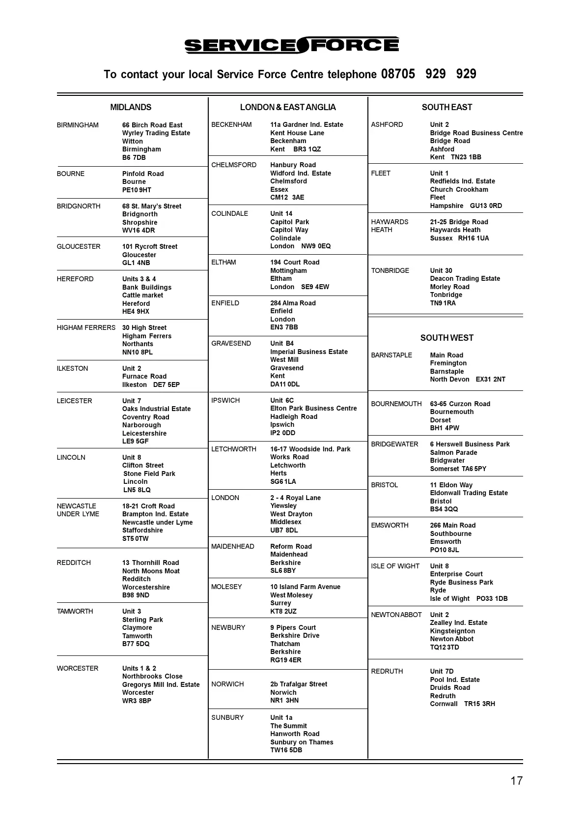 To contact your local Service Force Centre telephone