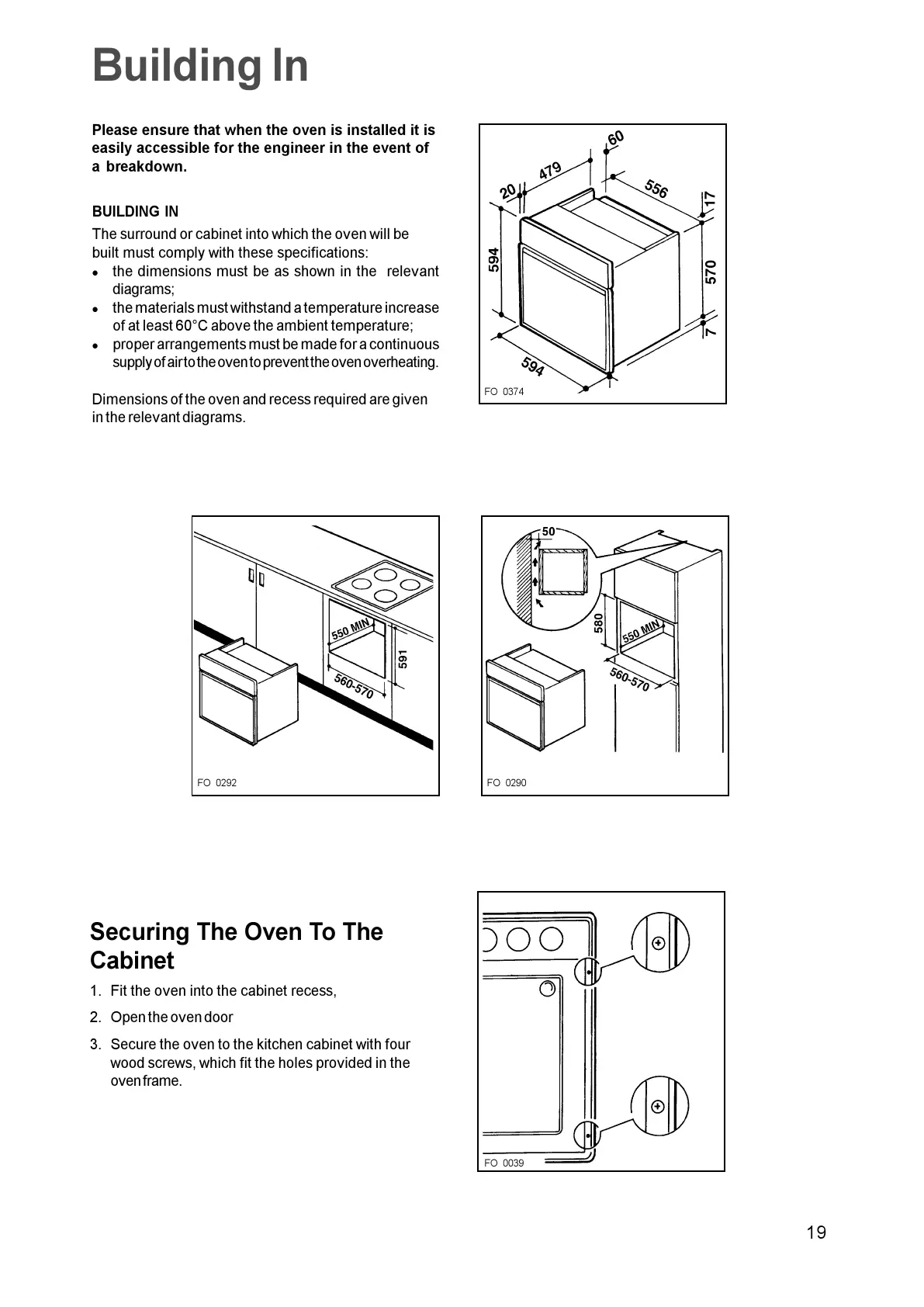 1. Fit the oven into the cabinet recess,