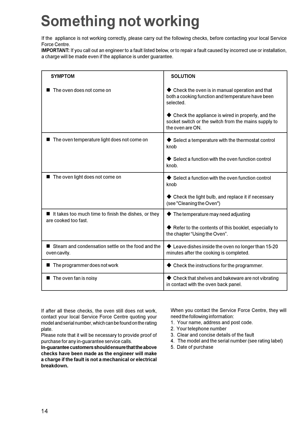 If the appliance is not working correctly, please carry out the following checks, before contacting your local Service