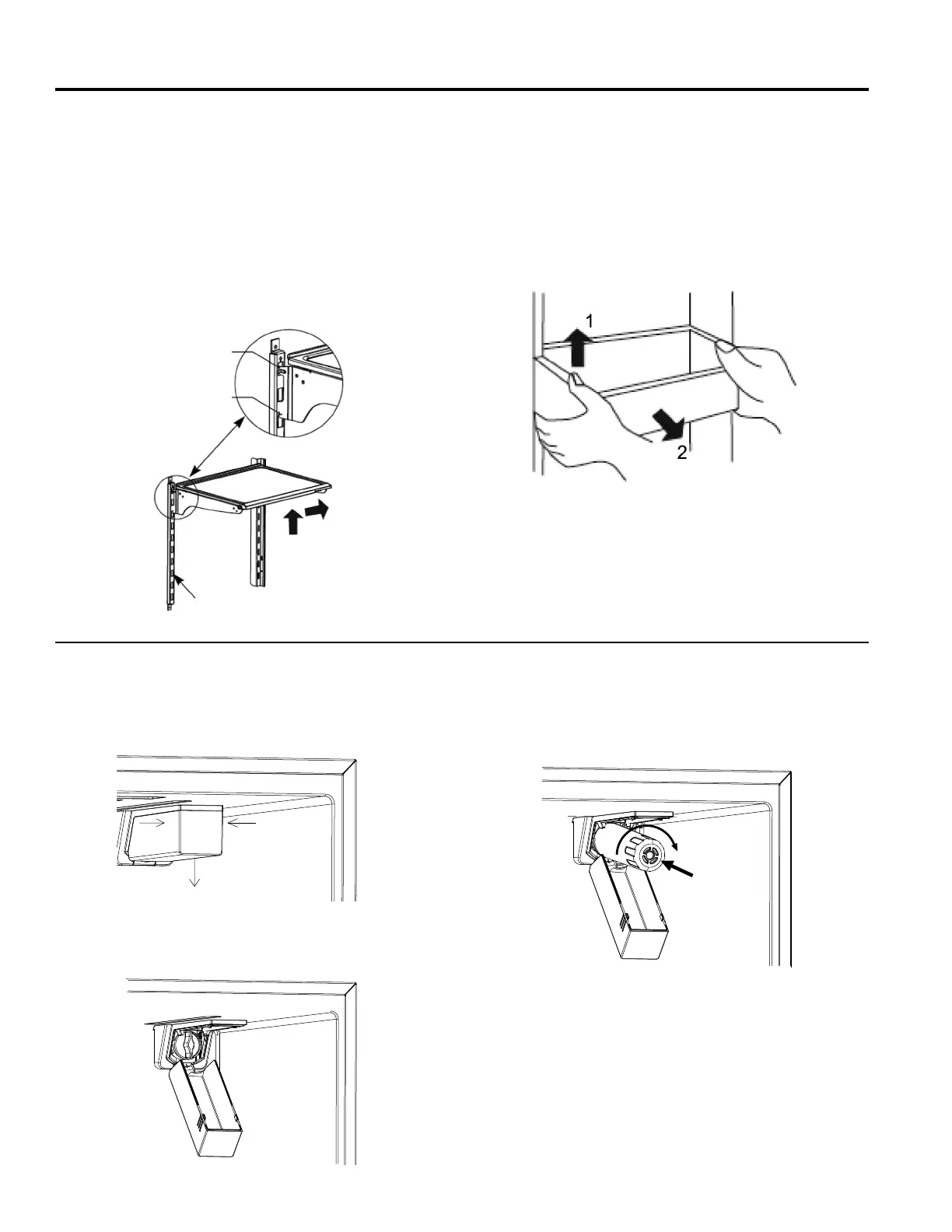 Levante el anaquel primero y luego retírelo inclinándolo hacia arri-