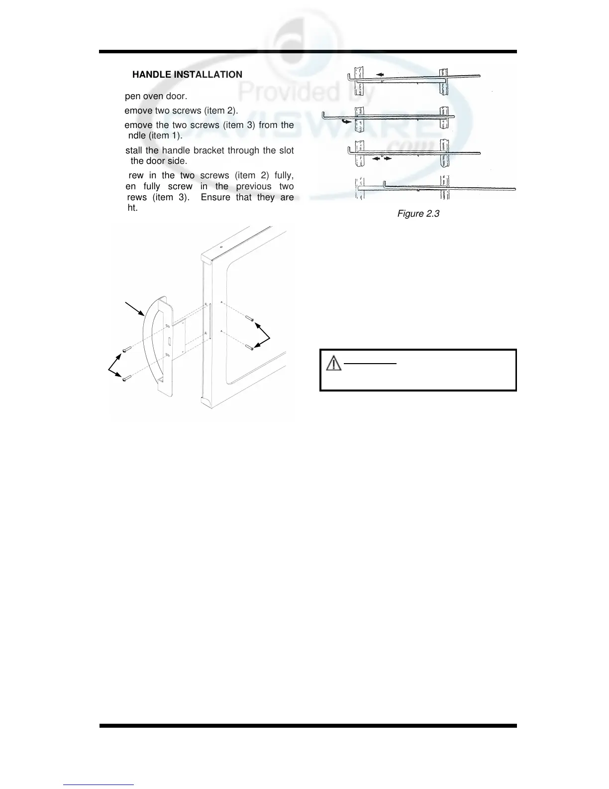 screws (item 3). Ensure that they are