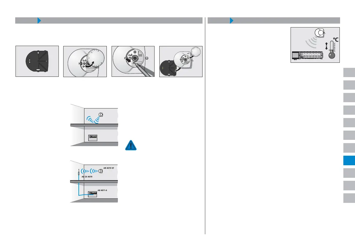 For at teste radiostrækningen tildeles termostaterne Regler Funk fra monteringsstedet og der gen-