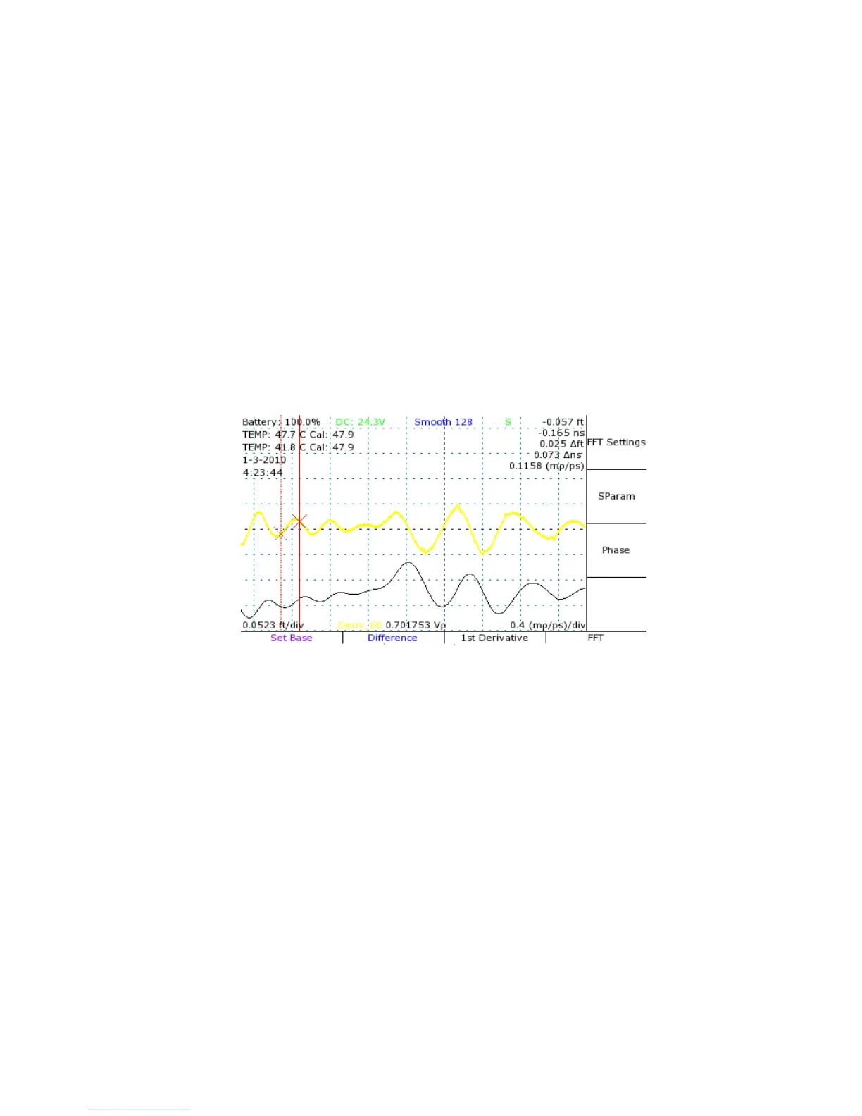 Figure 17: First-derivative plot (top) of an on-screen trace (bottom).