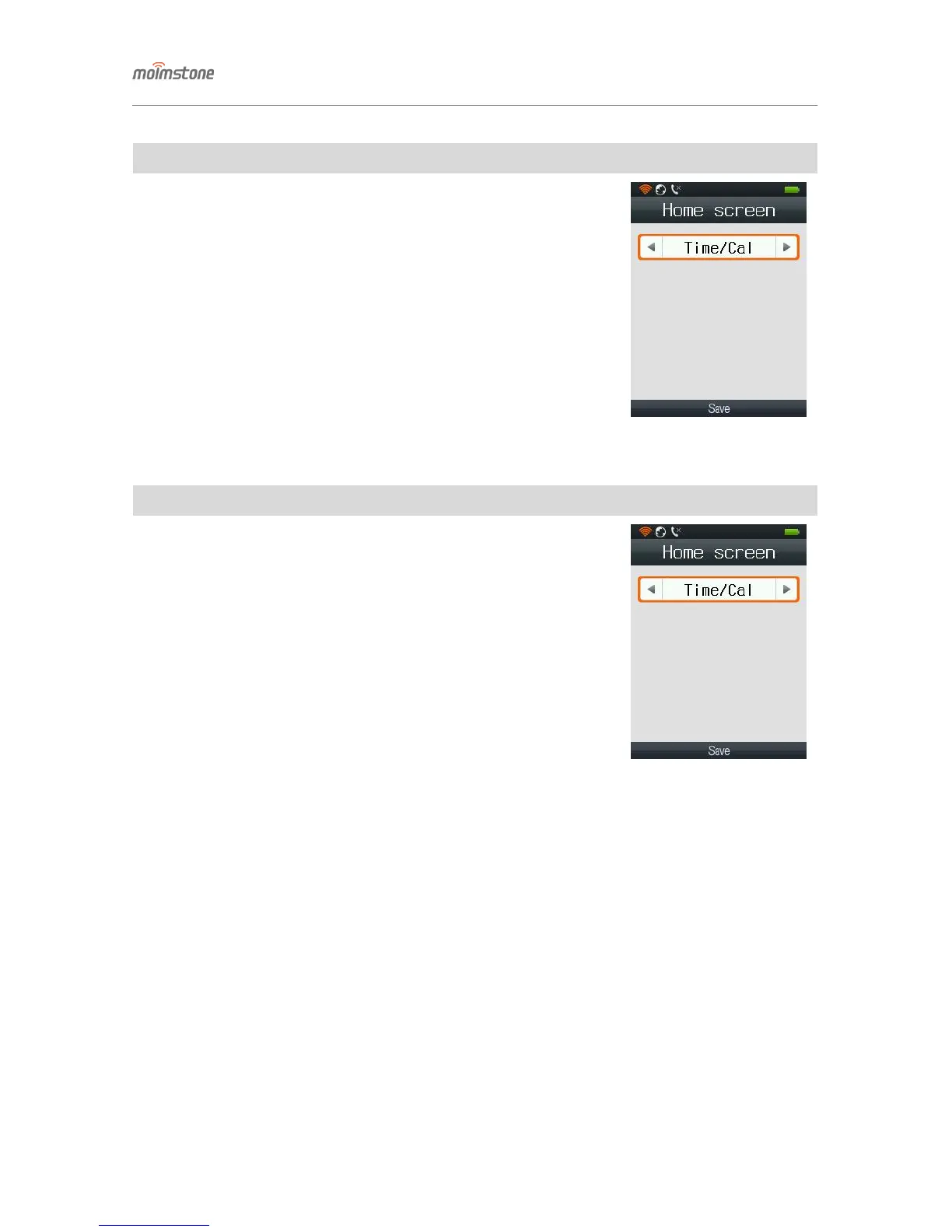 Moimstone mwp1100a - Home Screen; Power On;Off