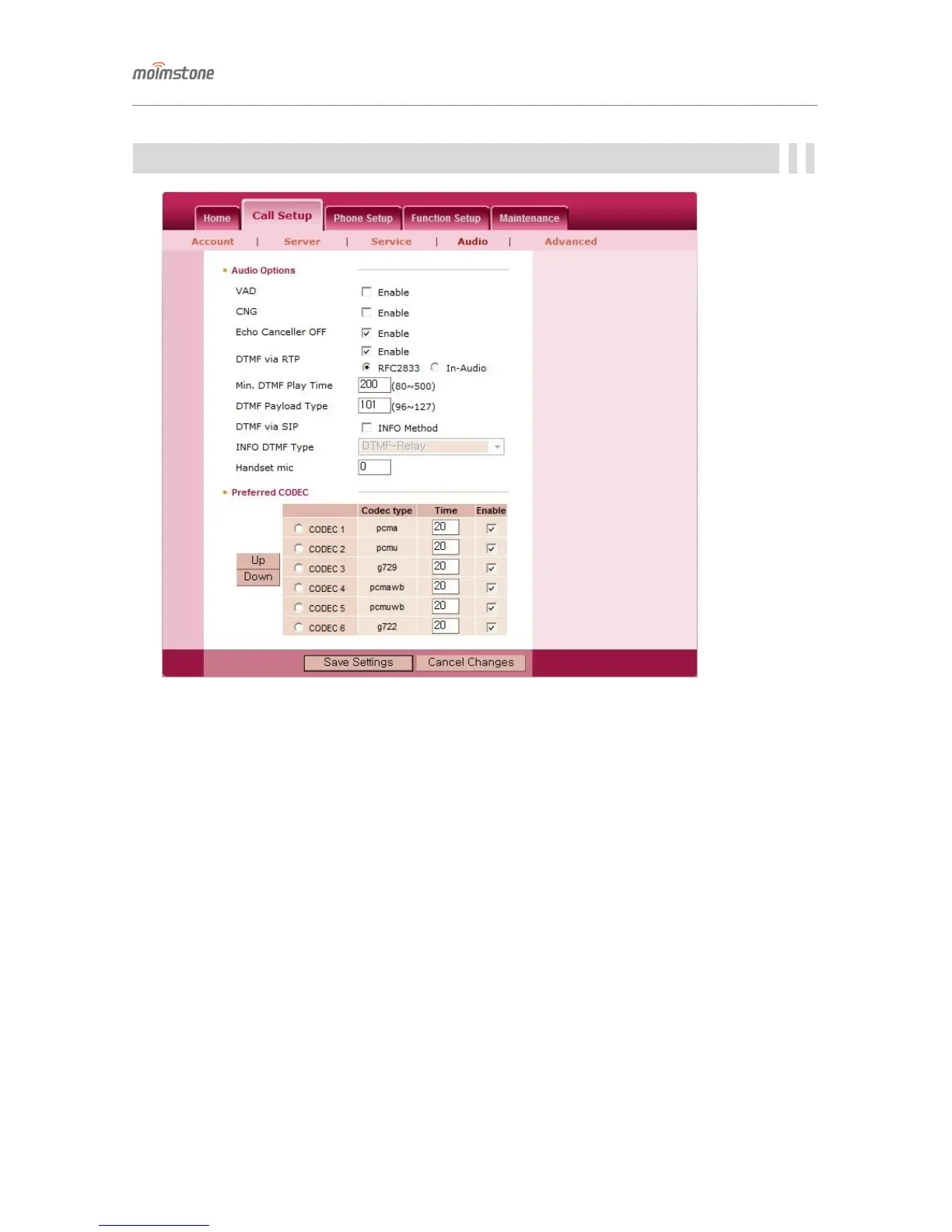 ♦ DTMF via RTP : Generates DTMF tones on the user’s phne. Selection of RFC2833 generates a tone with