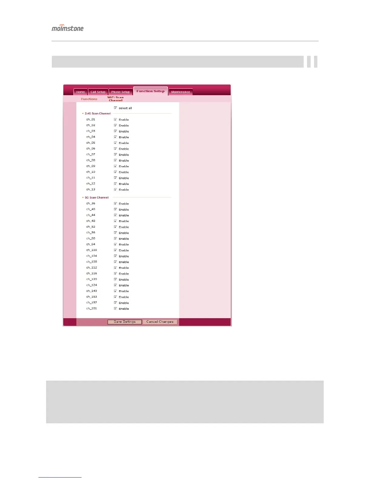 Selecting the WiFi scan channel enables the scanning of the specified channel.