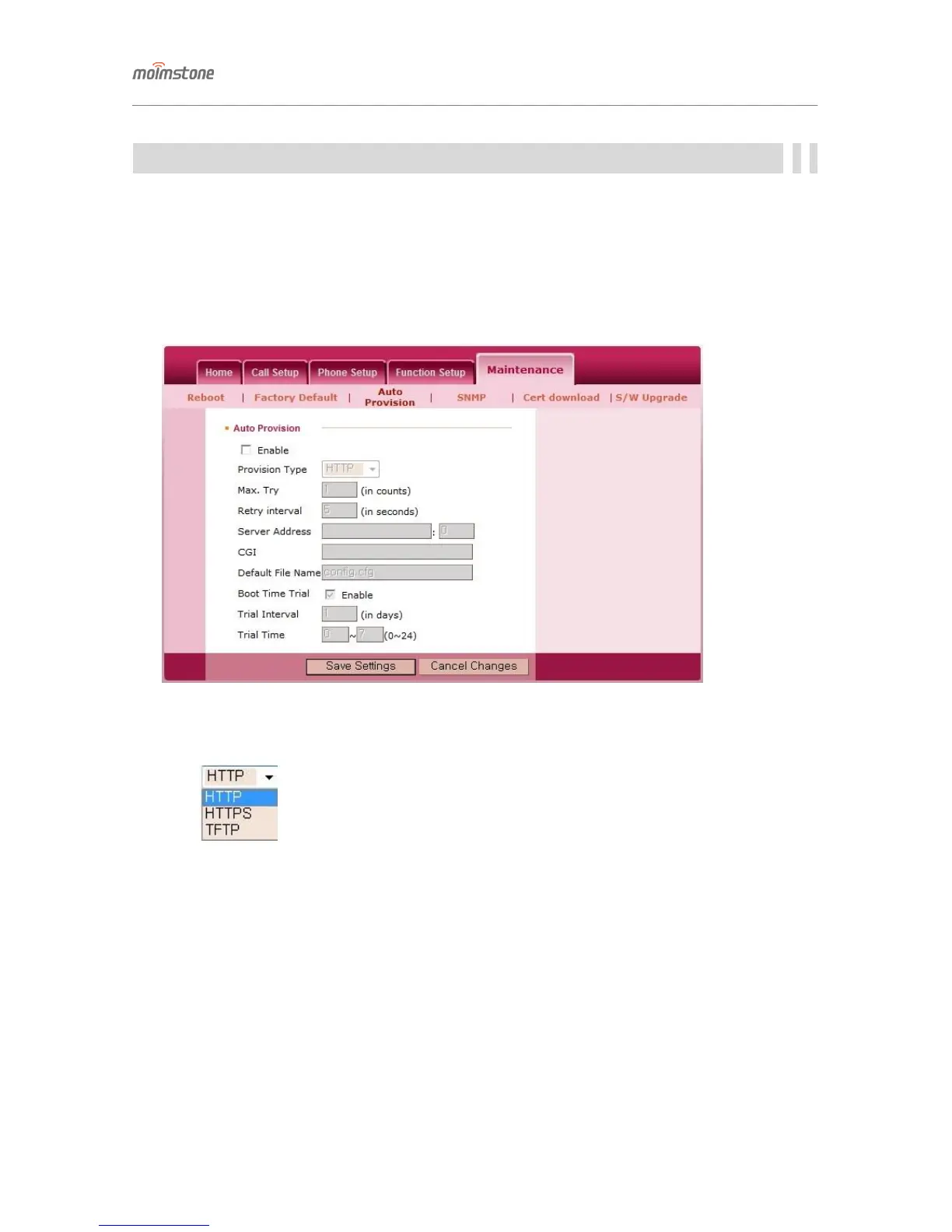 buttons. To use the auto setting, a TFTP and HTTP sever must be in operation so that the configuration file can